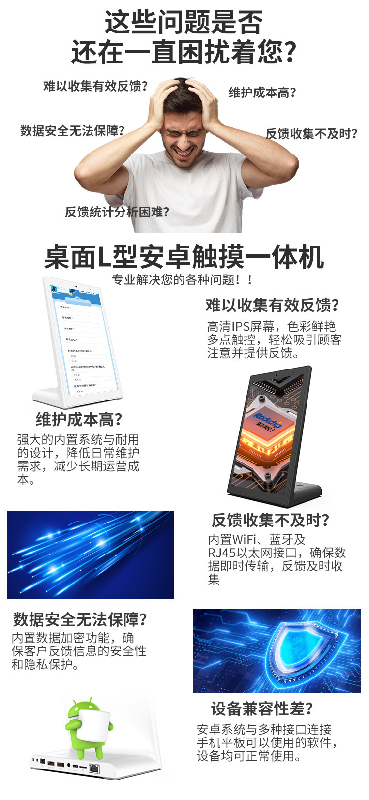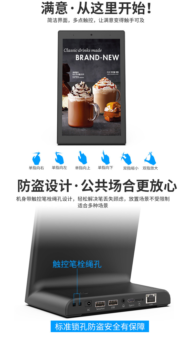 8inch 10.1inch 데스크탑 L자형 태블릿 안드로이드 올인원 평가기 호출기 만족도 평가 디스플레이스토어 가기
