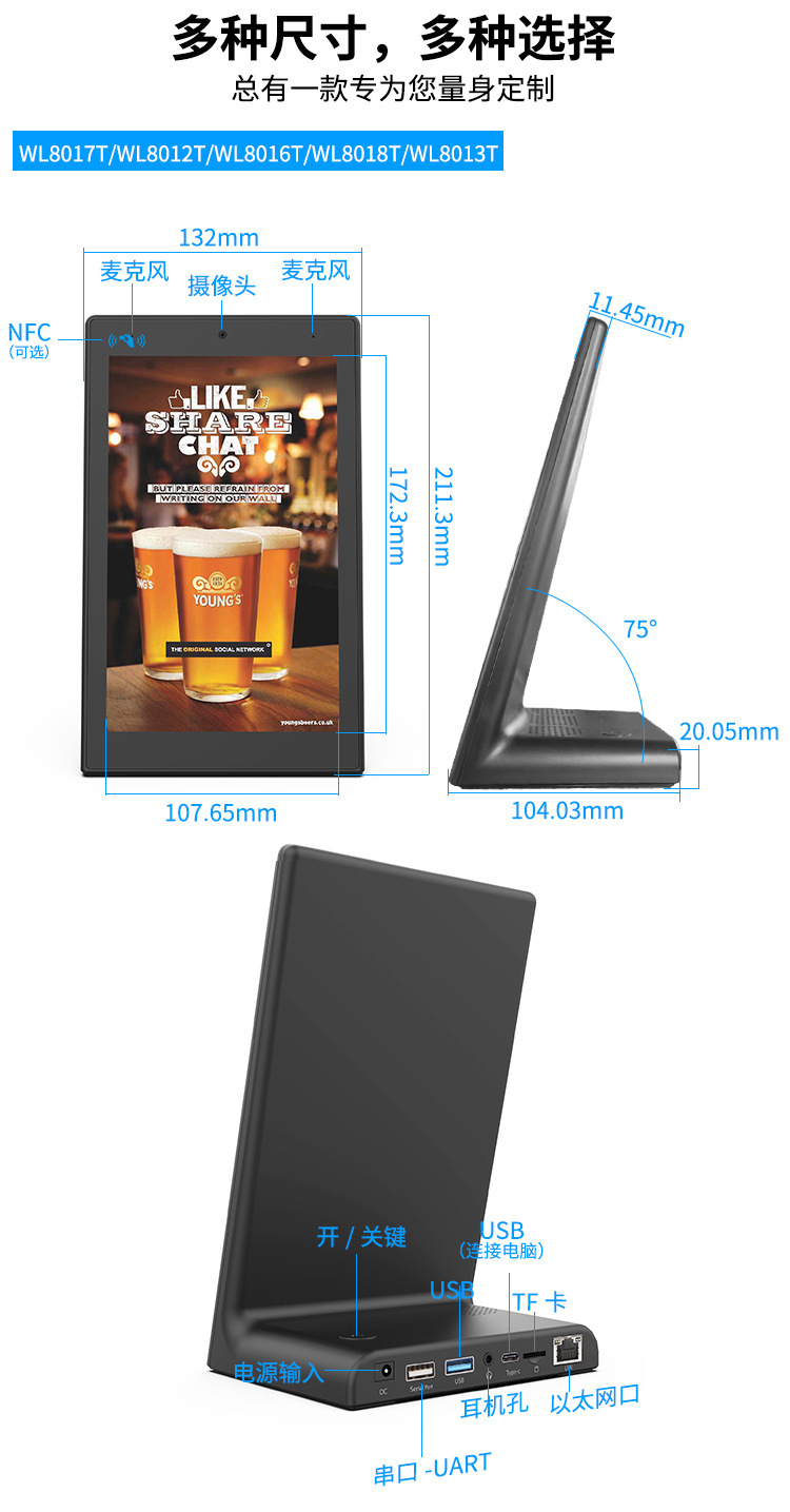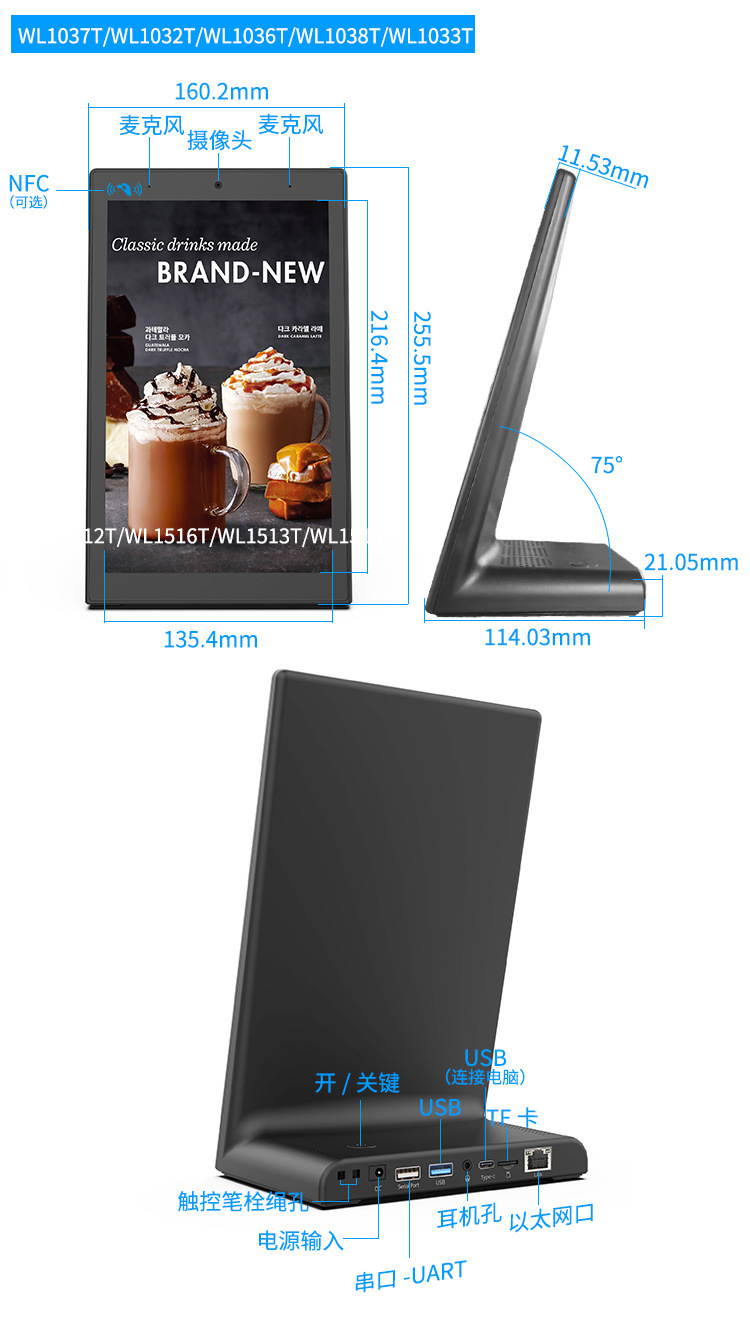 • 블랙 8inch 수직 화면 RK3568,2+16GB,wifi6,500만 카메라