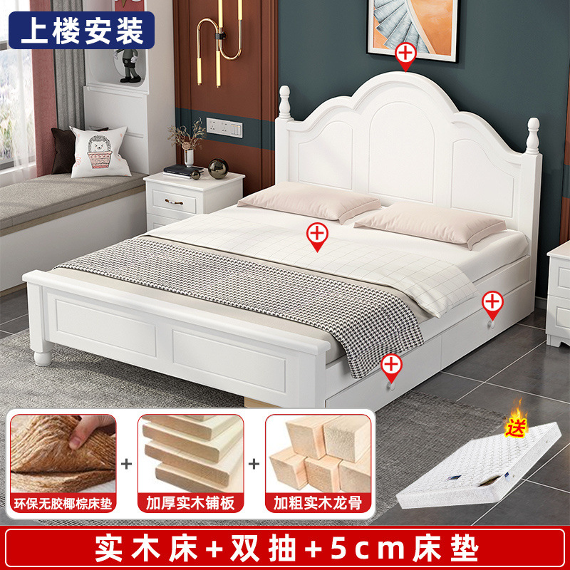 • 원목침대 + 더블서랍 + 5cm 매트리스 [집으로배송]