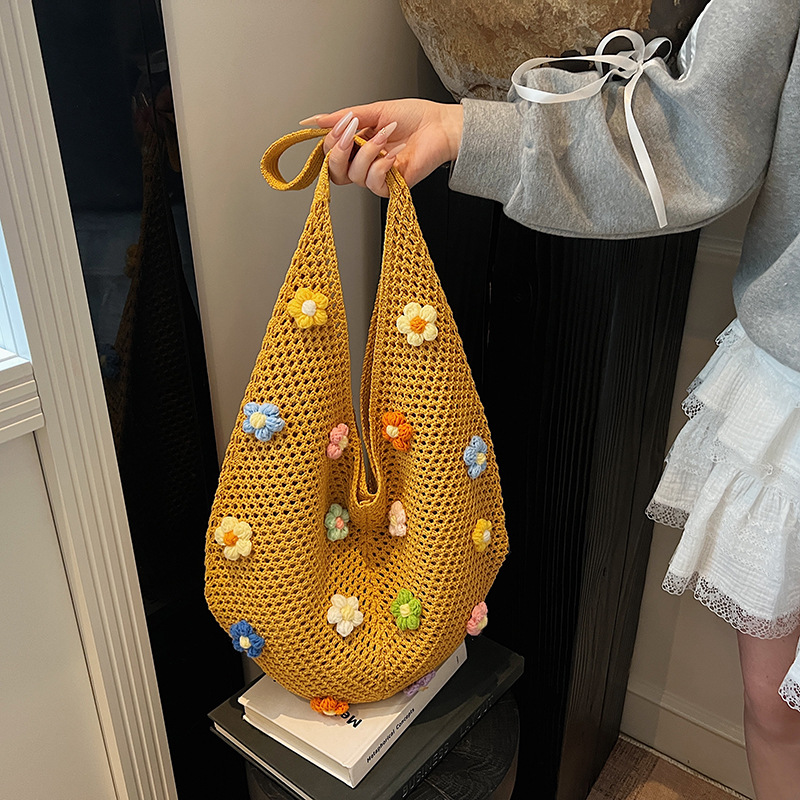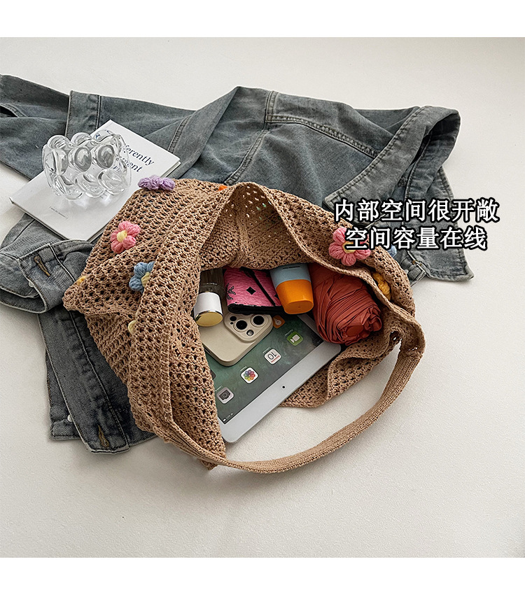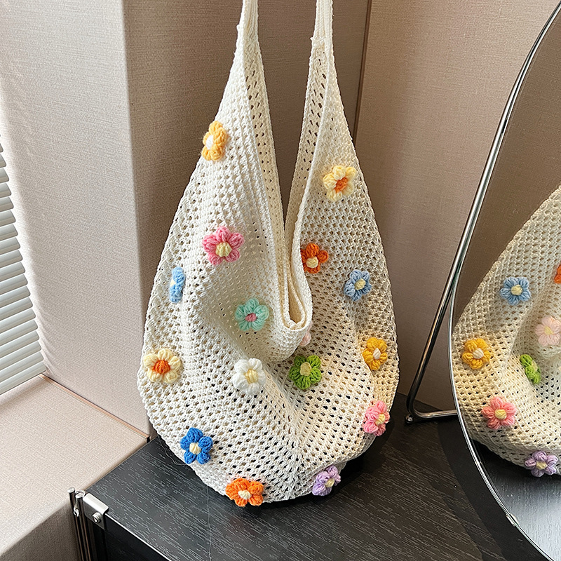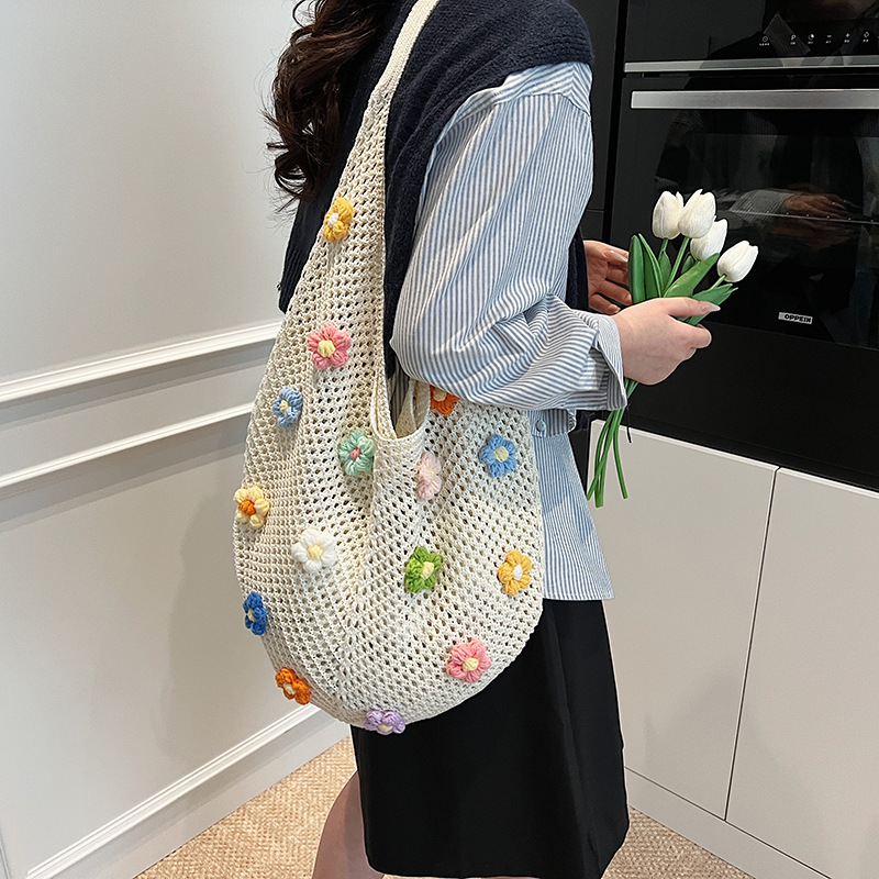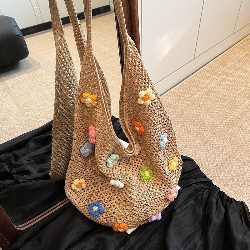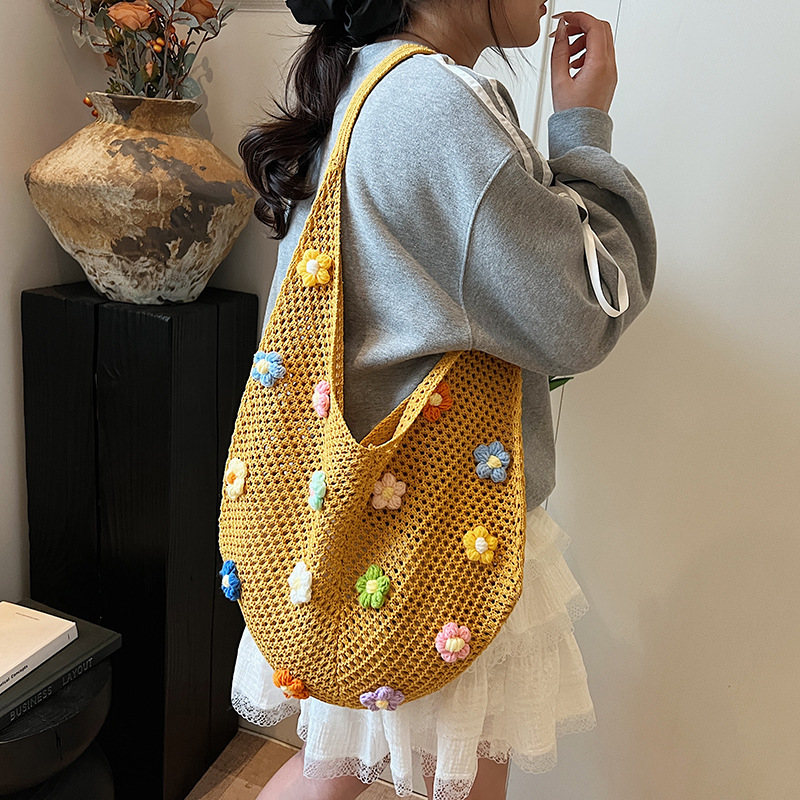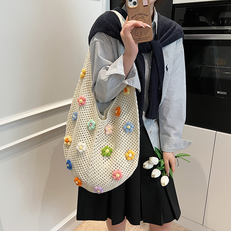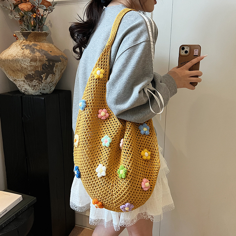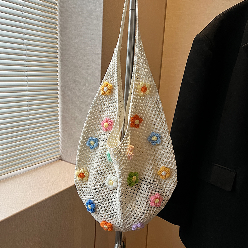 올해 인기있는 가방 여성의 새로운 패션 통근 니트 백 틈새 디자인 캐주얼 중공 어깨 토트 백스토어 가기