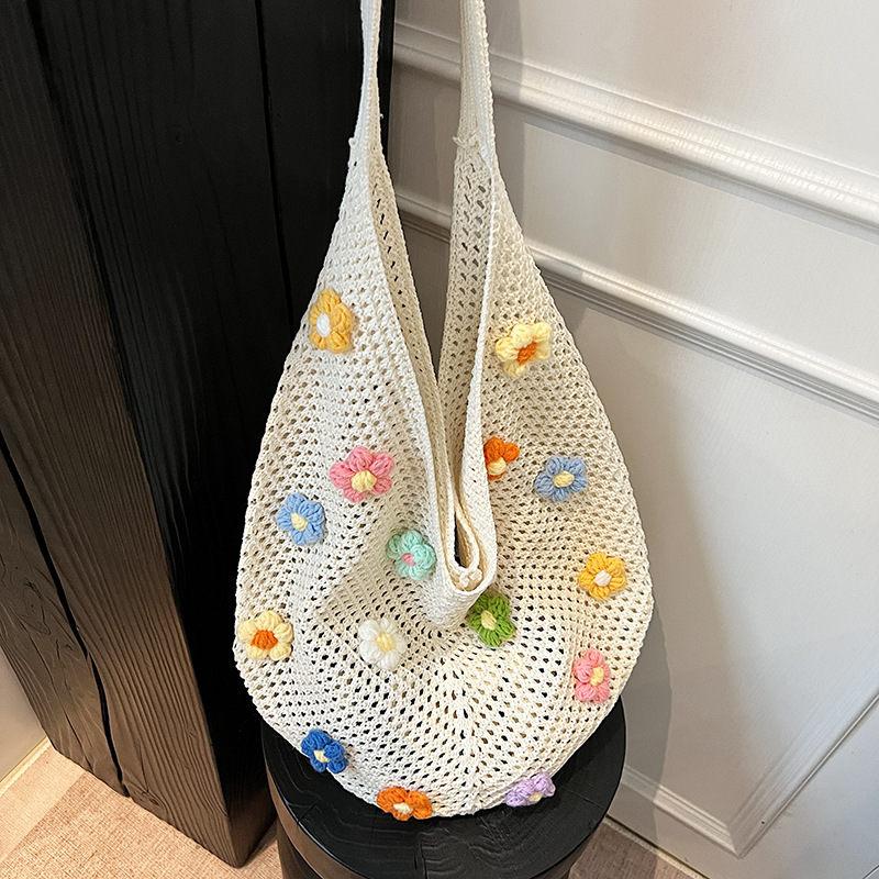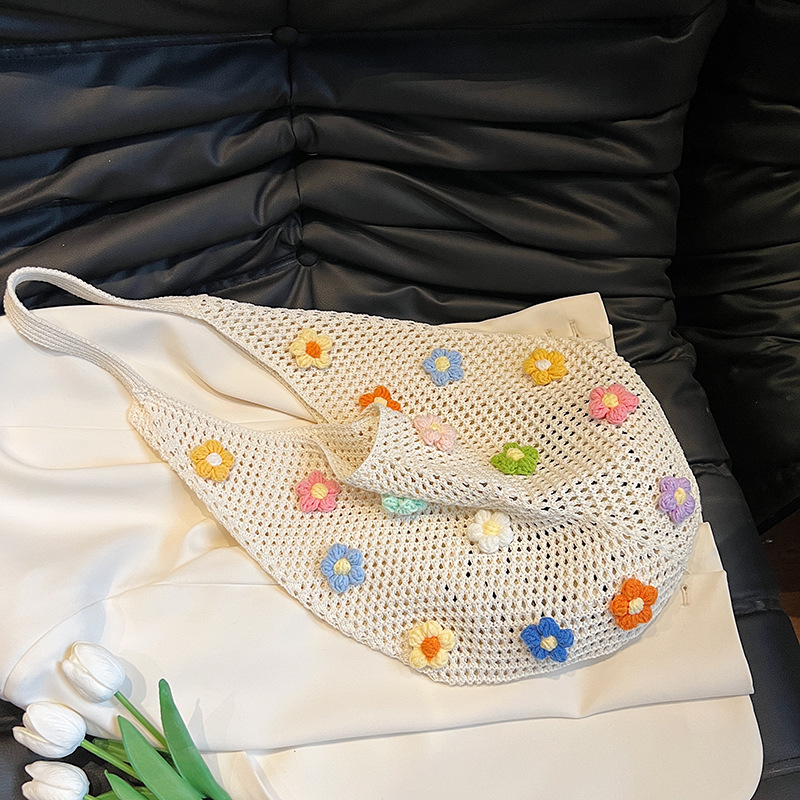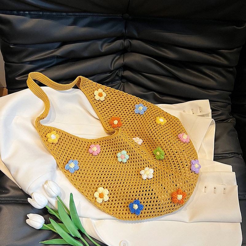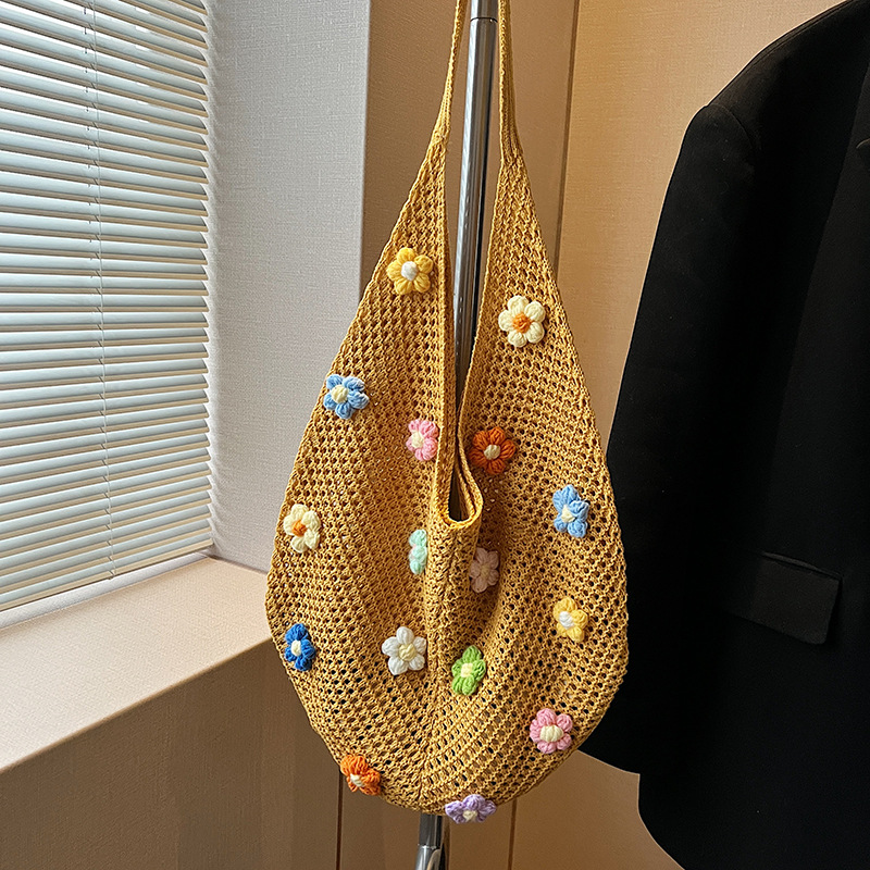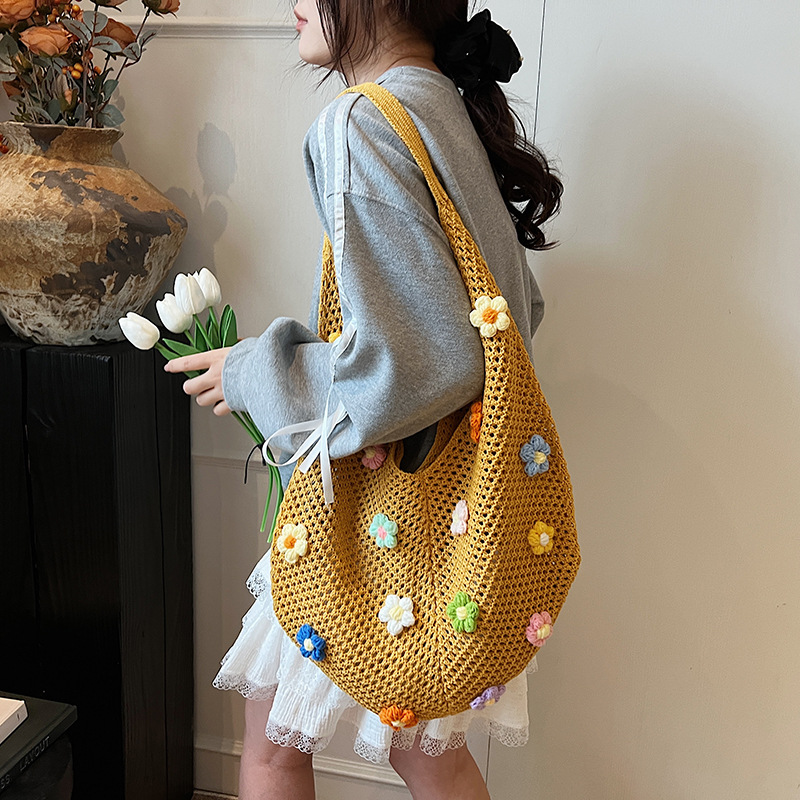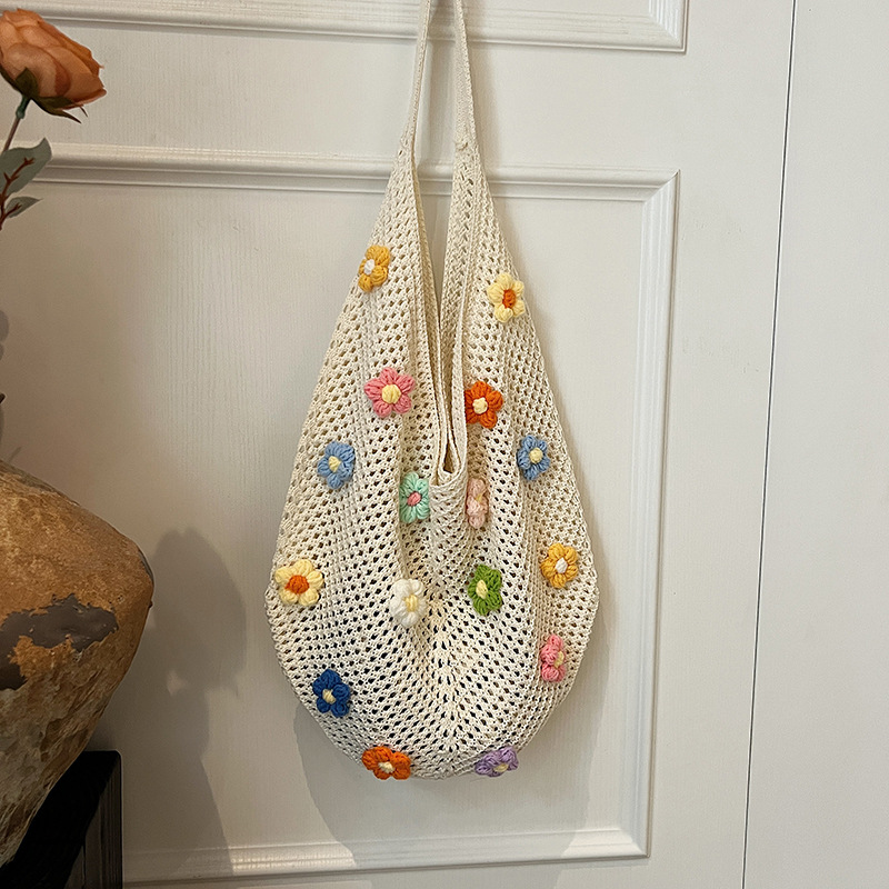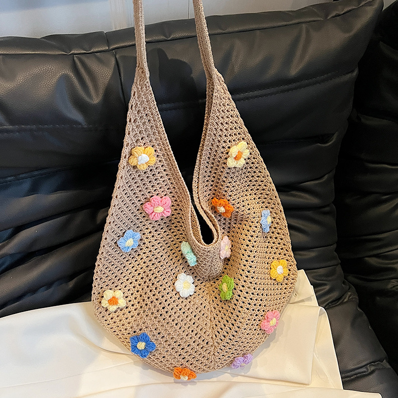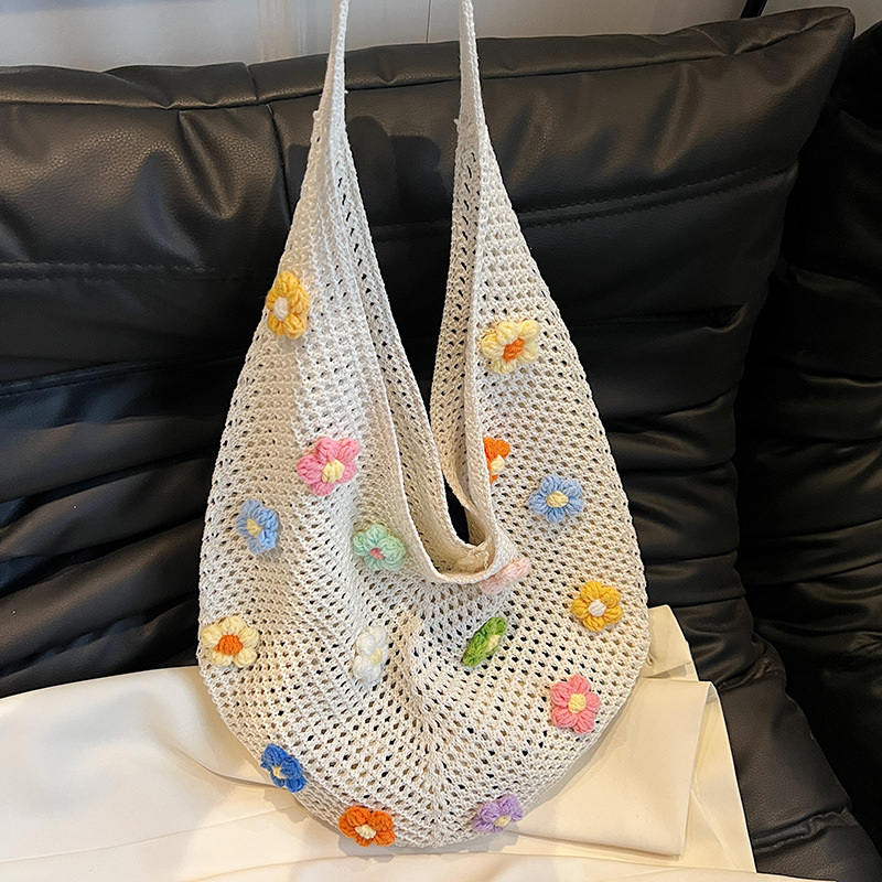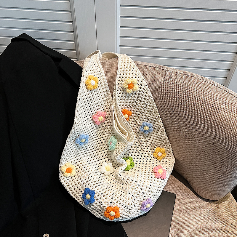 올해 인기있는 가방 여성의 새로운 패션 통근 니트 백 틈새 디자인 캐주얼 중공 어깨 토트 백스토어 가기