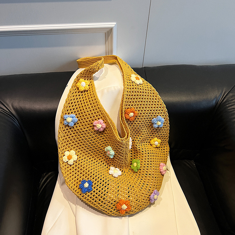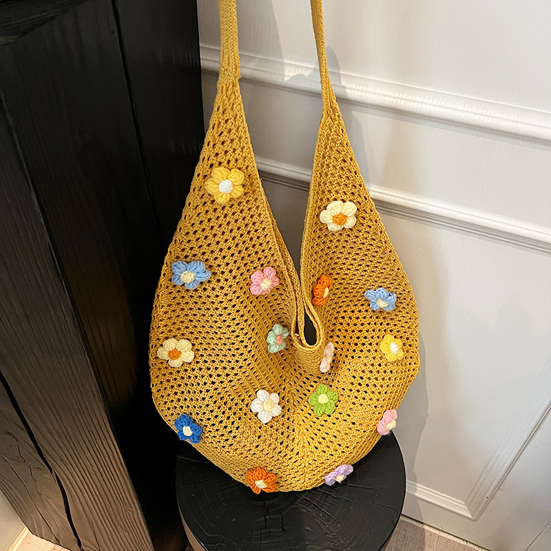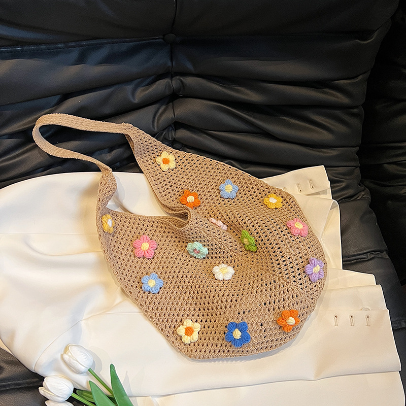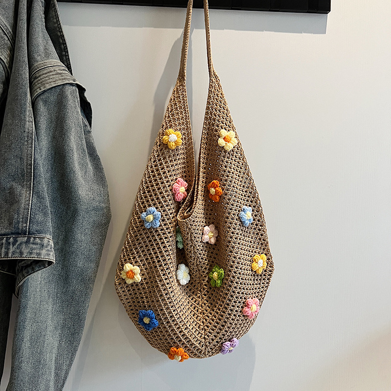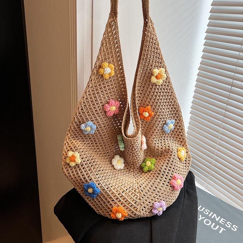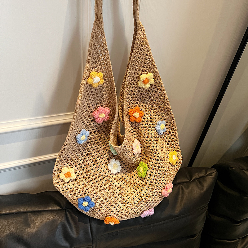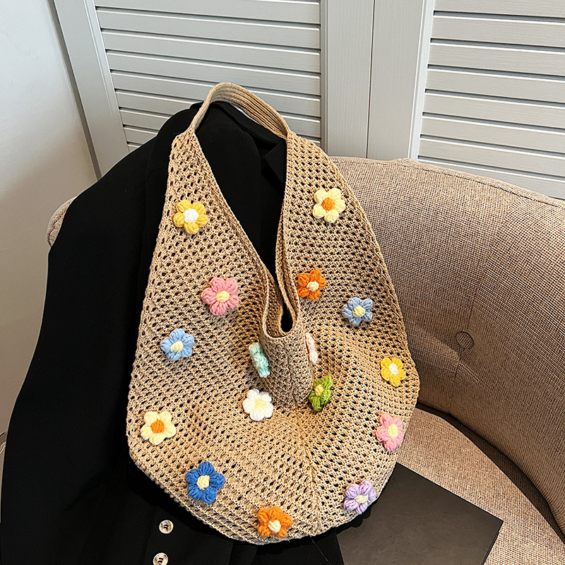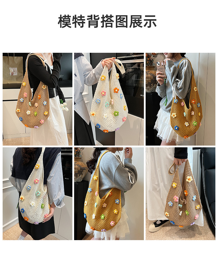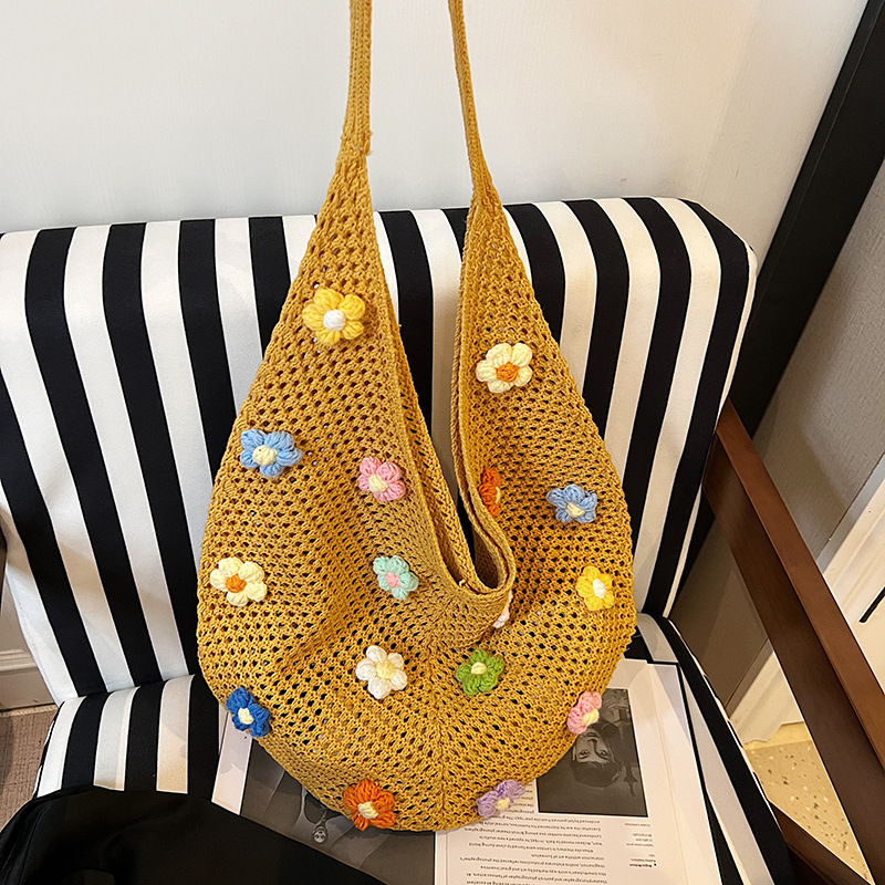 올해 인기있는 가방 여성의 새로운 패션 통근 니트 백 틈새 디자인 캐주얼 중공 어깨 토트 백스토어 가기
