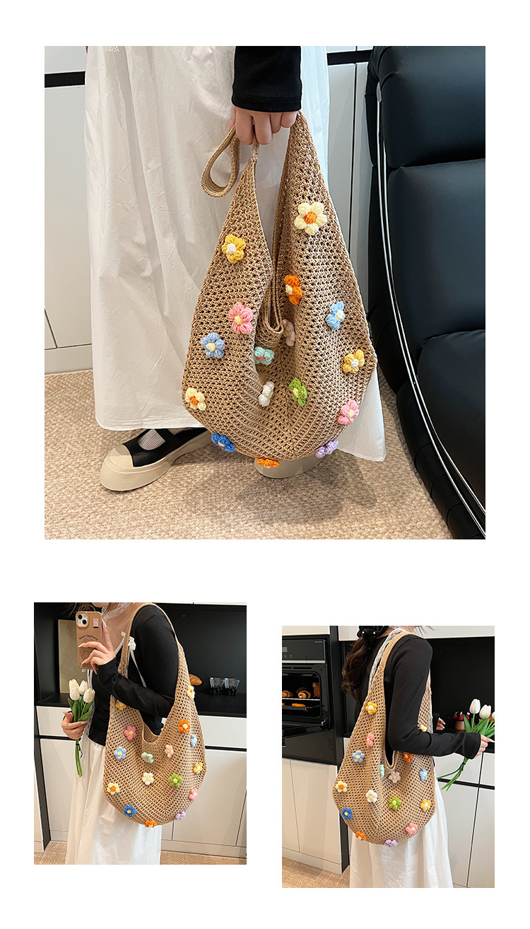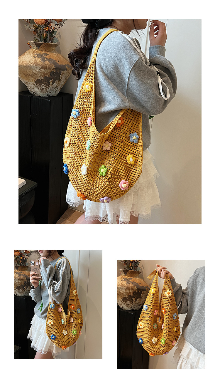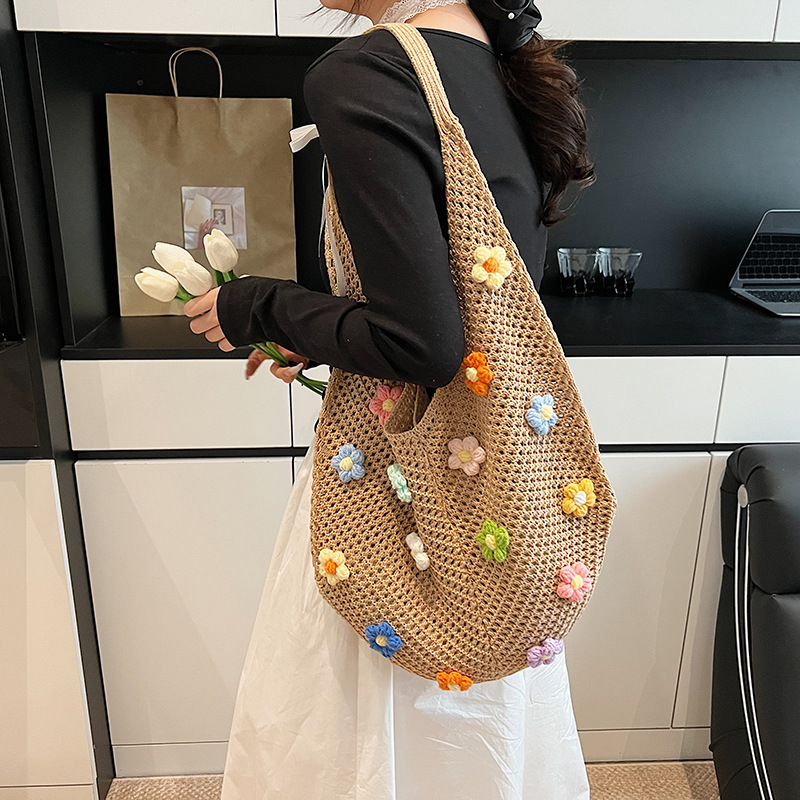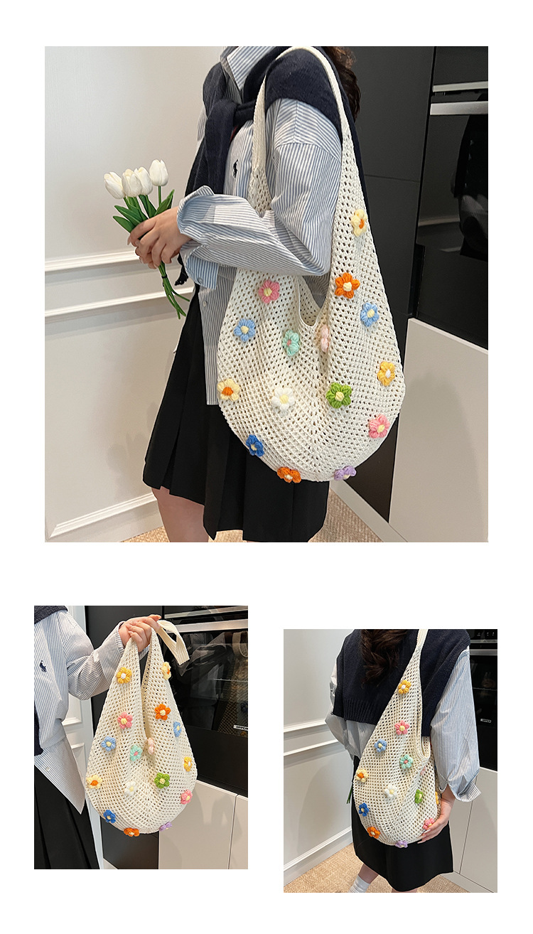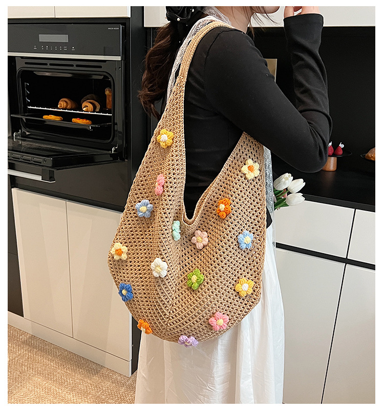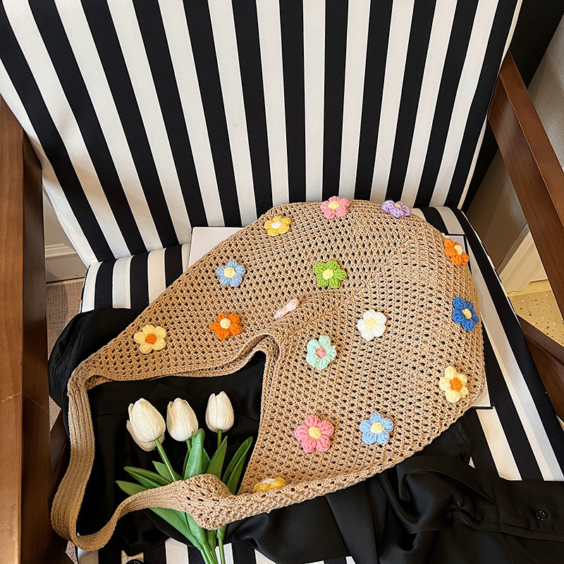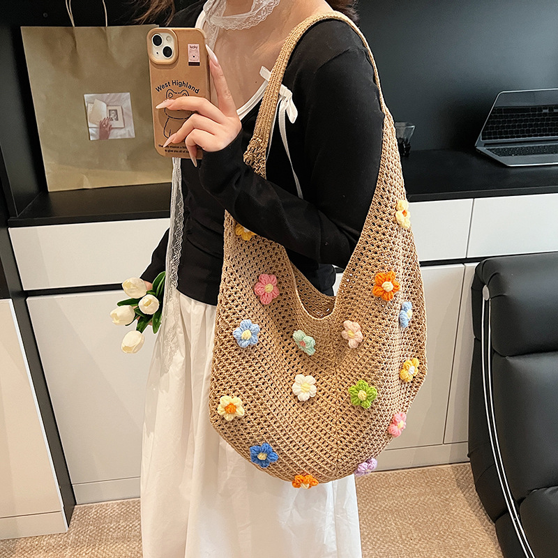 올해 인기있는 가방 여성의 새로운 패션 통근 니트 백 틈새 디자인 캐주얼 중공 어깨 토트 백스토어 가기