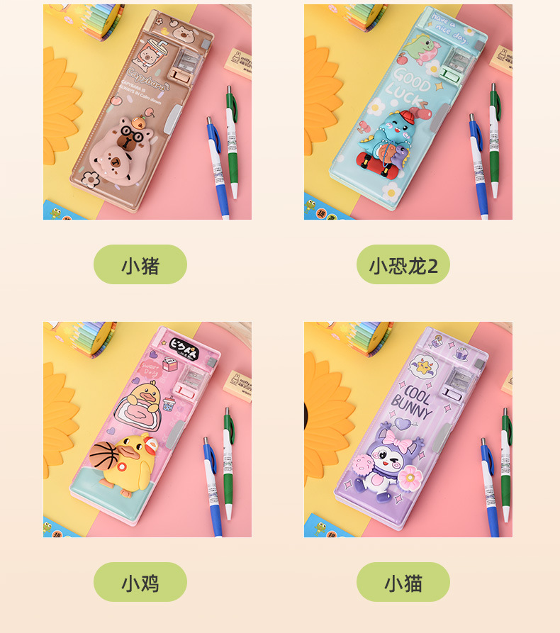 국경 간 아마존 만화 입체 인형 어린이 문구 상자 소년과 소녀를위한 샤프너가있는 창의적인 더블 레이어 연필 상자스토어 가기