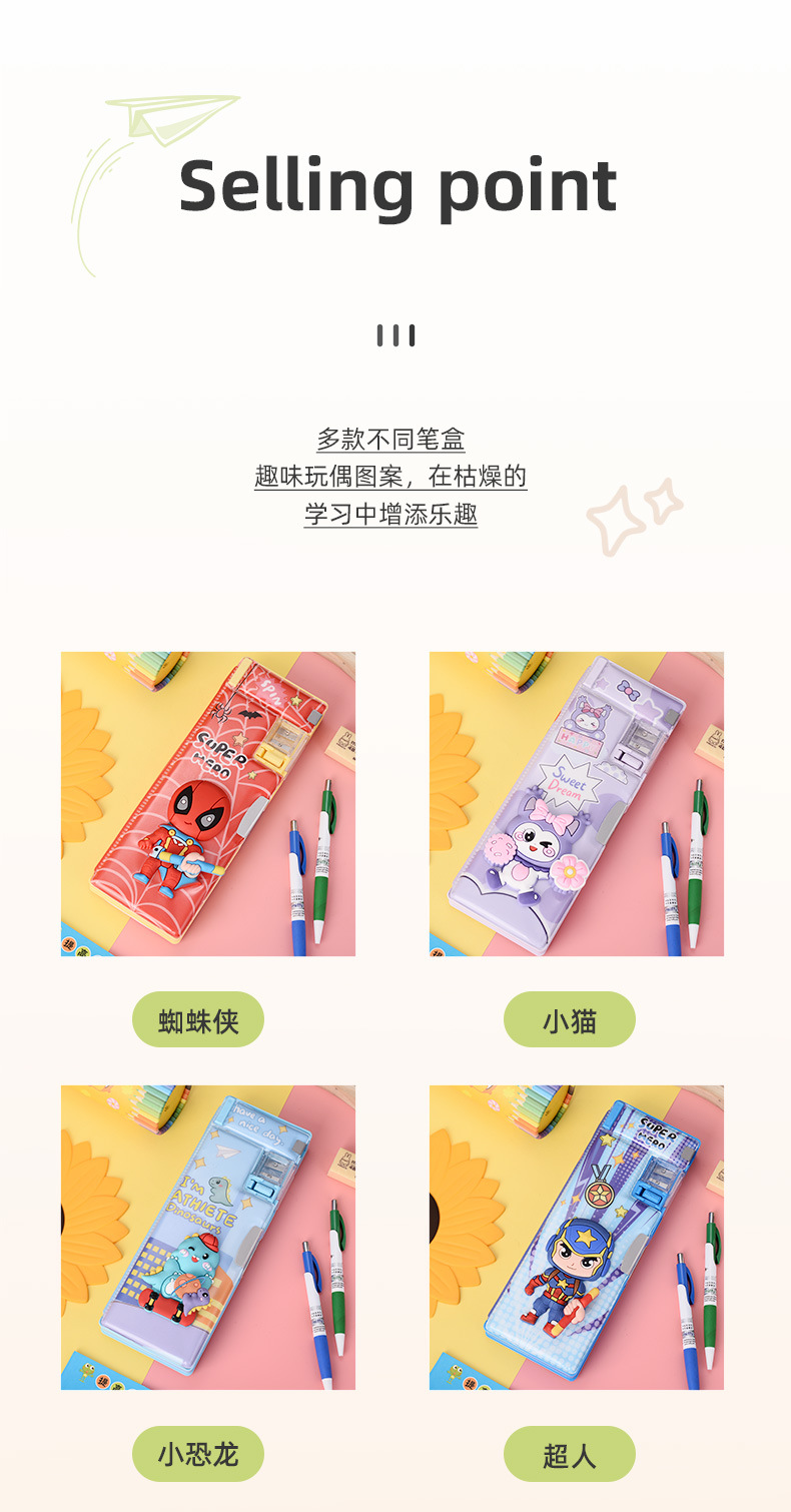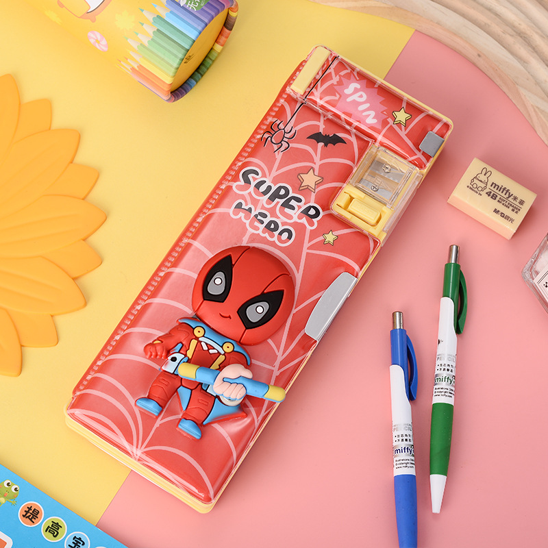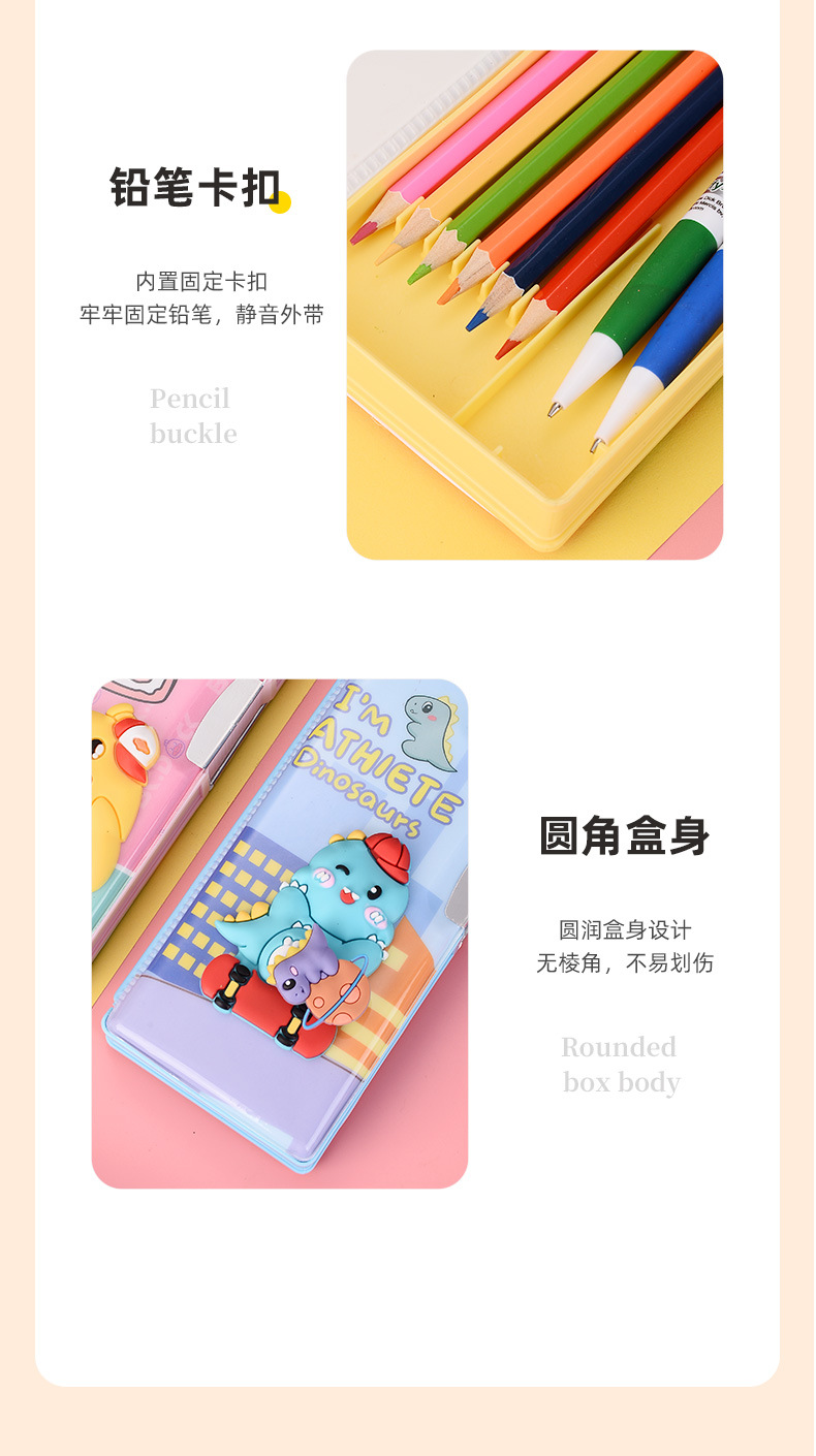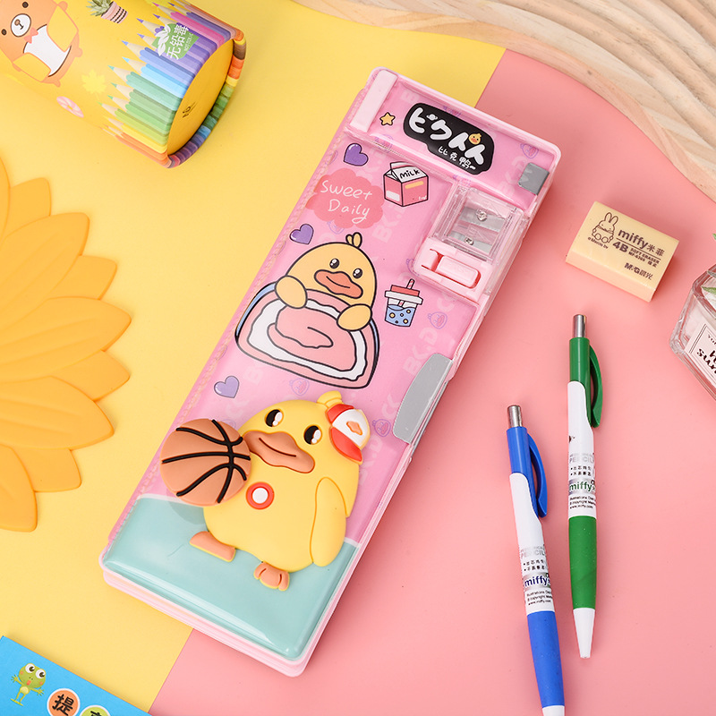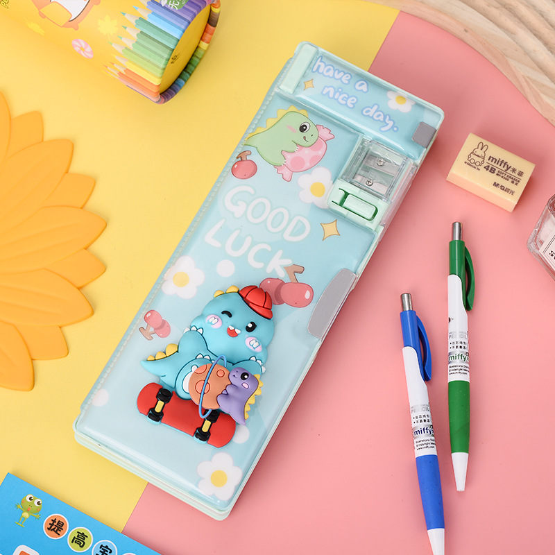 국경 간 아마존 만화 입체 인형 어린이 문구 상자 소년과 소녀를위한 샤프너가있는 창의적인 더블 레이어 연필 상자