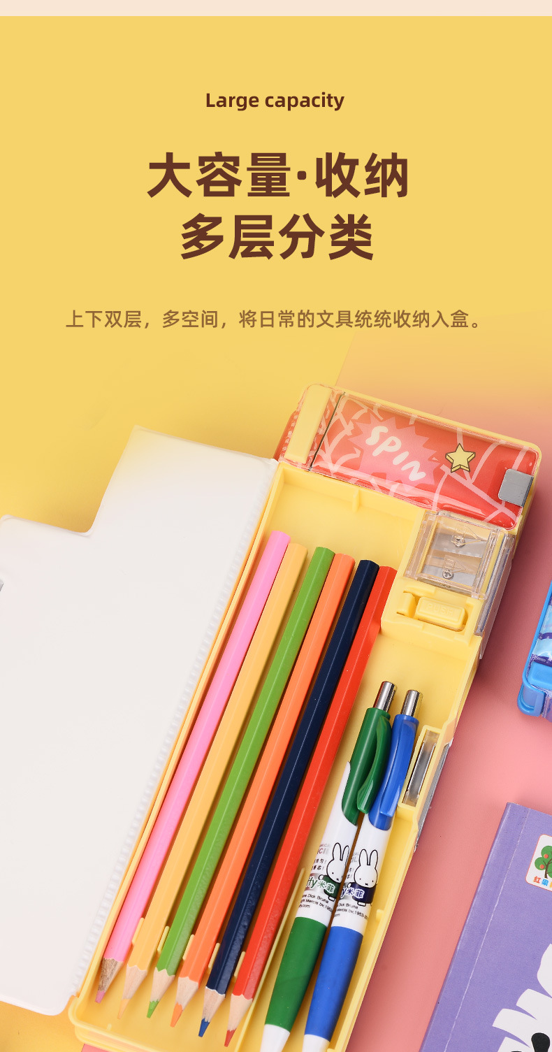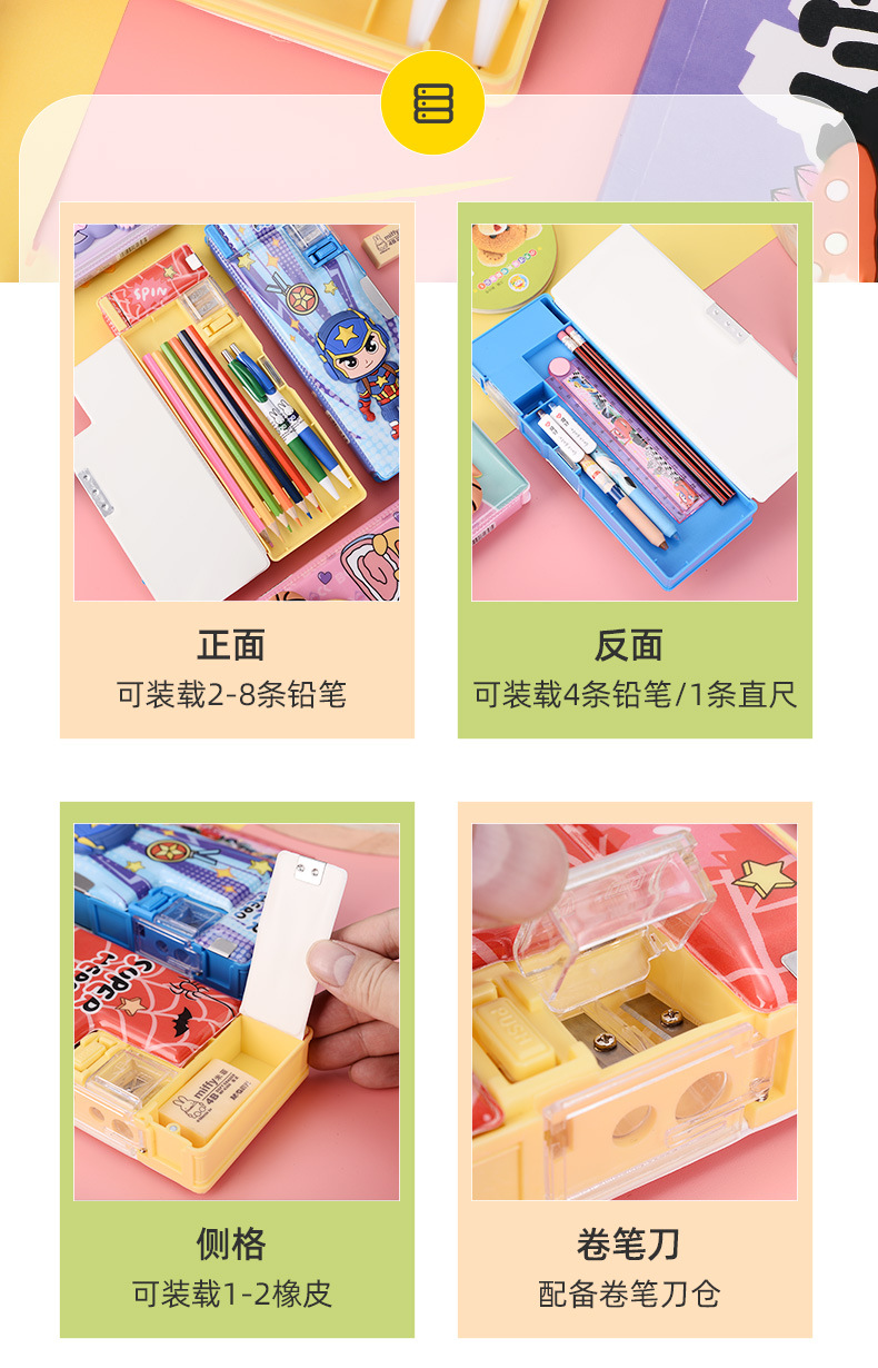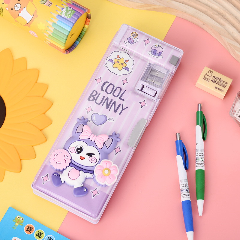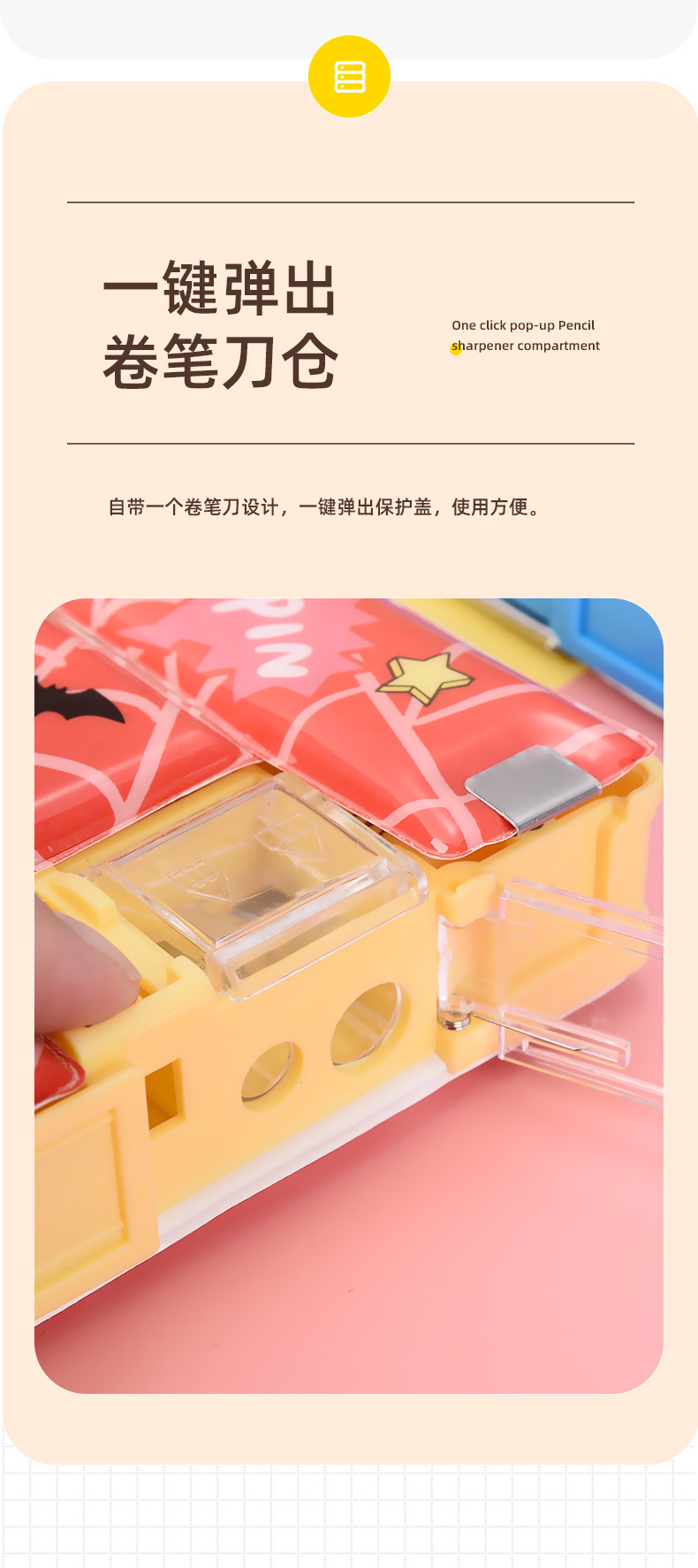 국경 간 아마존 만화 입체 인형 어린이 문구 상자 소년과 소녀를위한 샤프너가있는 창의적인 더블 레이어 연필 상자