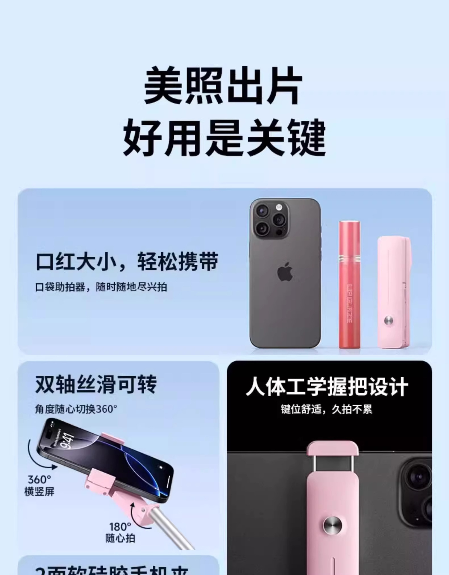 2025 슈퍼 미니 셀카 스틱 작은 휴대용 블루투스 360 회전 전화 카메라 아티팩트 포켓 보조 촬영 홀더스토어 가기