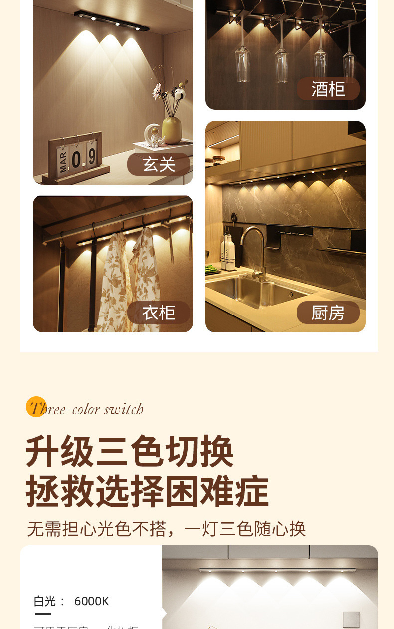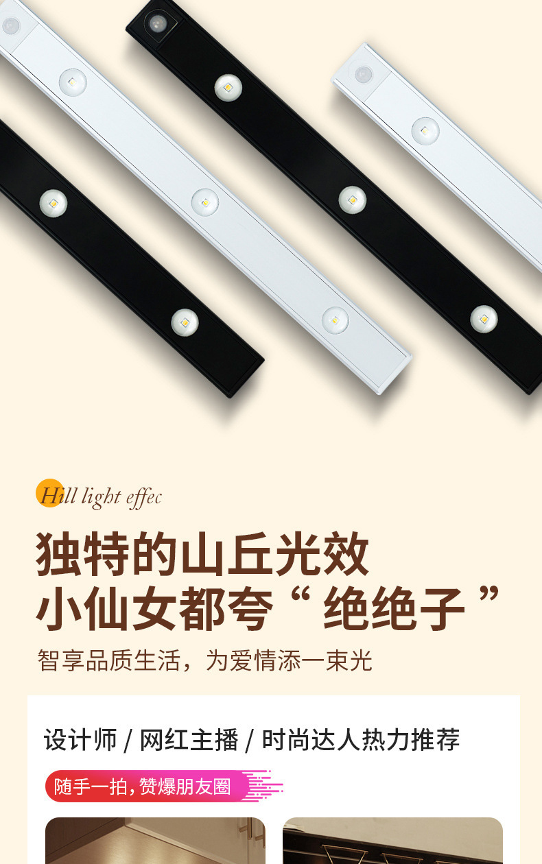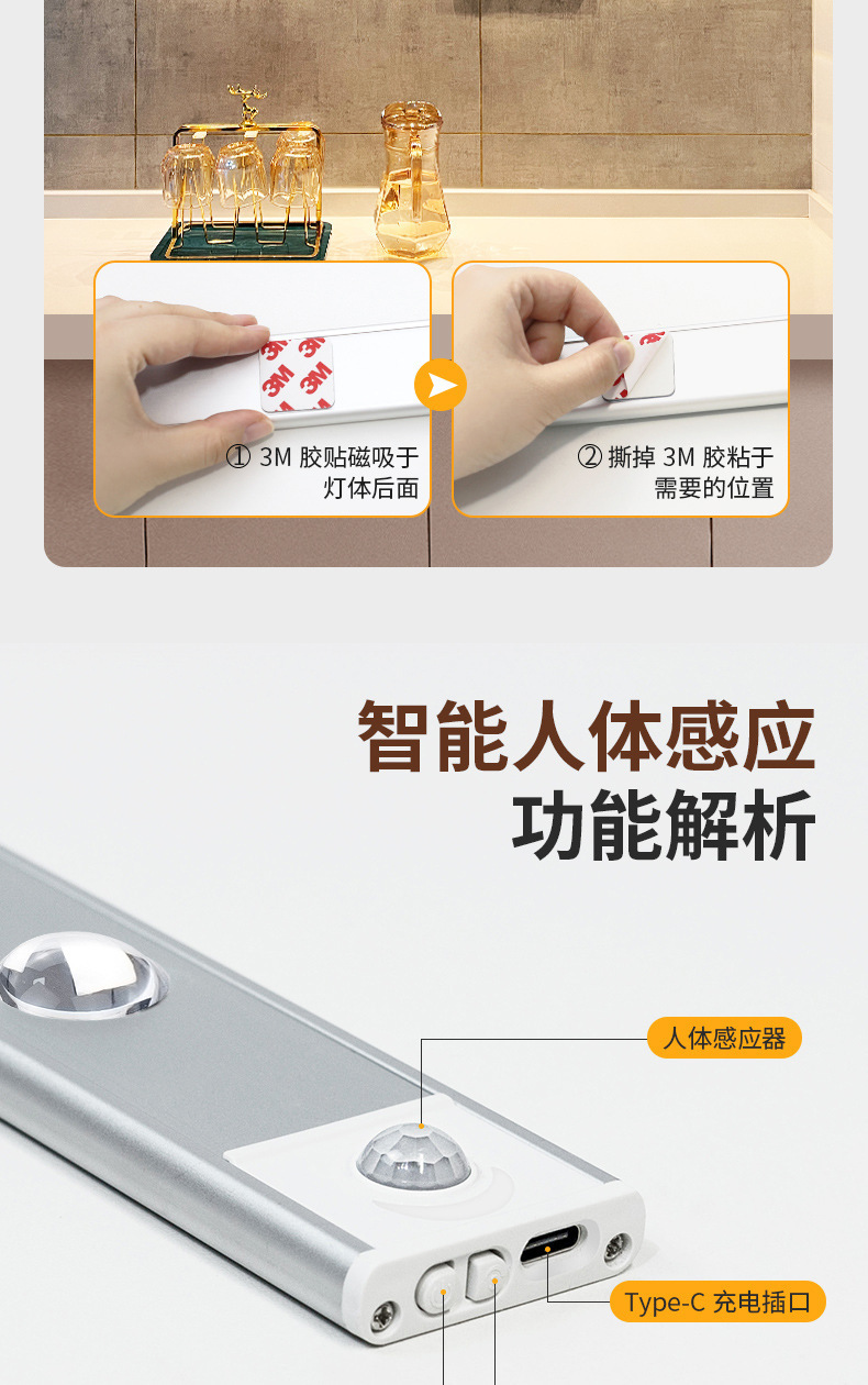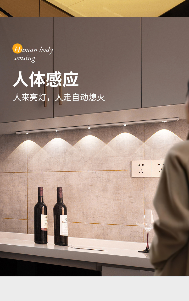 인체감지 LED 캐비닛 조명, 충전식 자석 부착형 와인 캐비닛 및 신발장 조명 스트립, 센서 조명, 지능형 조명 제어