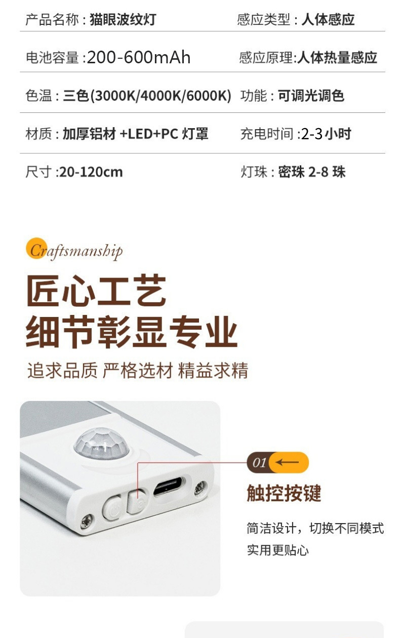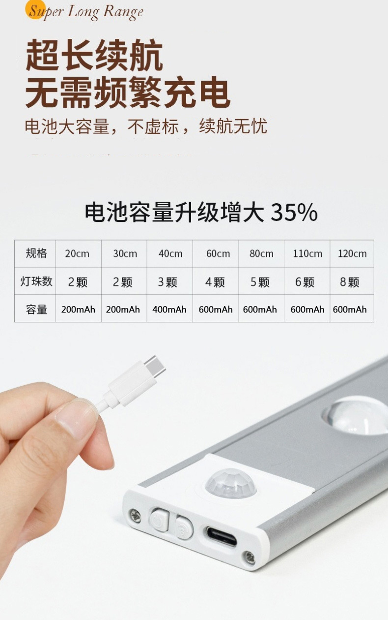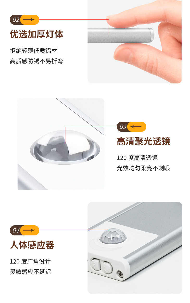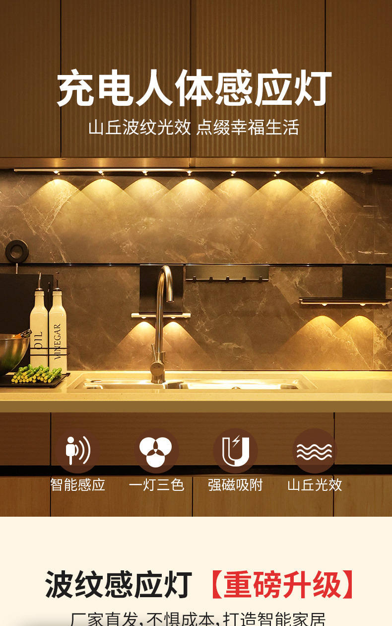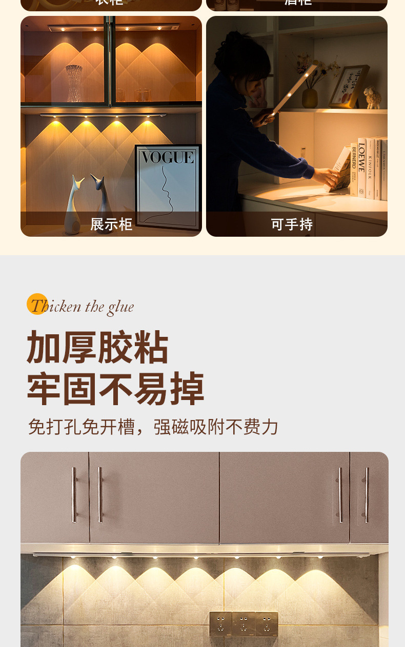 인체감지 LED 캐비닛 조명, 충전식 자석 부착형 와인 캐비닛 및 신발장 조명 스트립, 센서 조명, 지능형 조명 제어