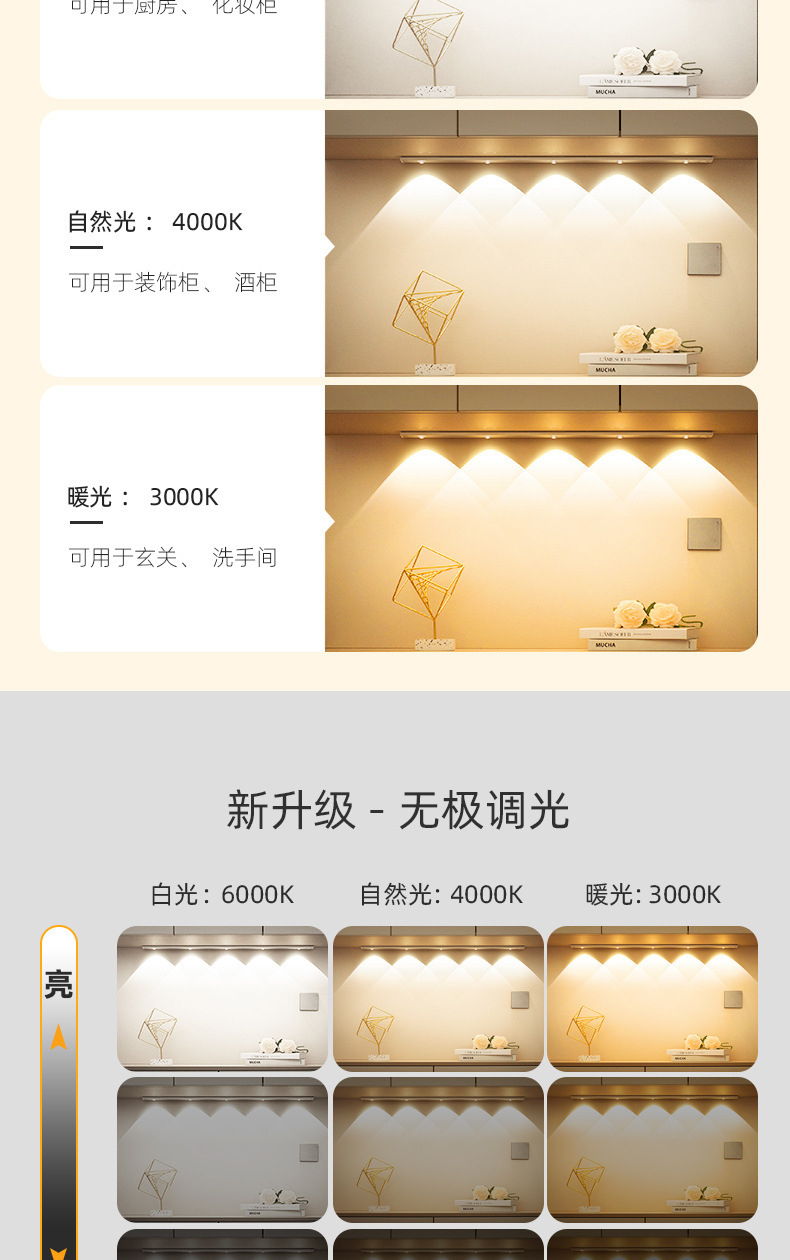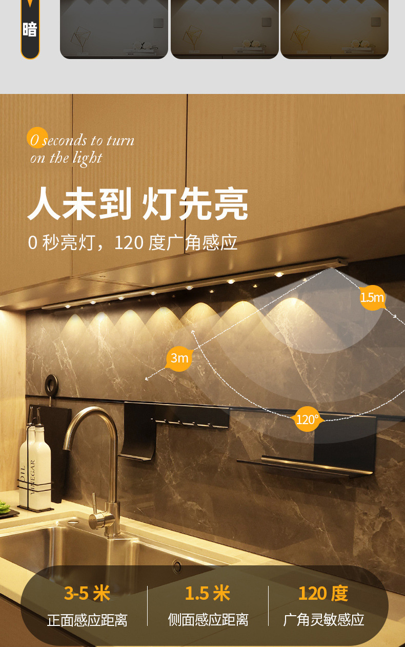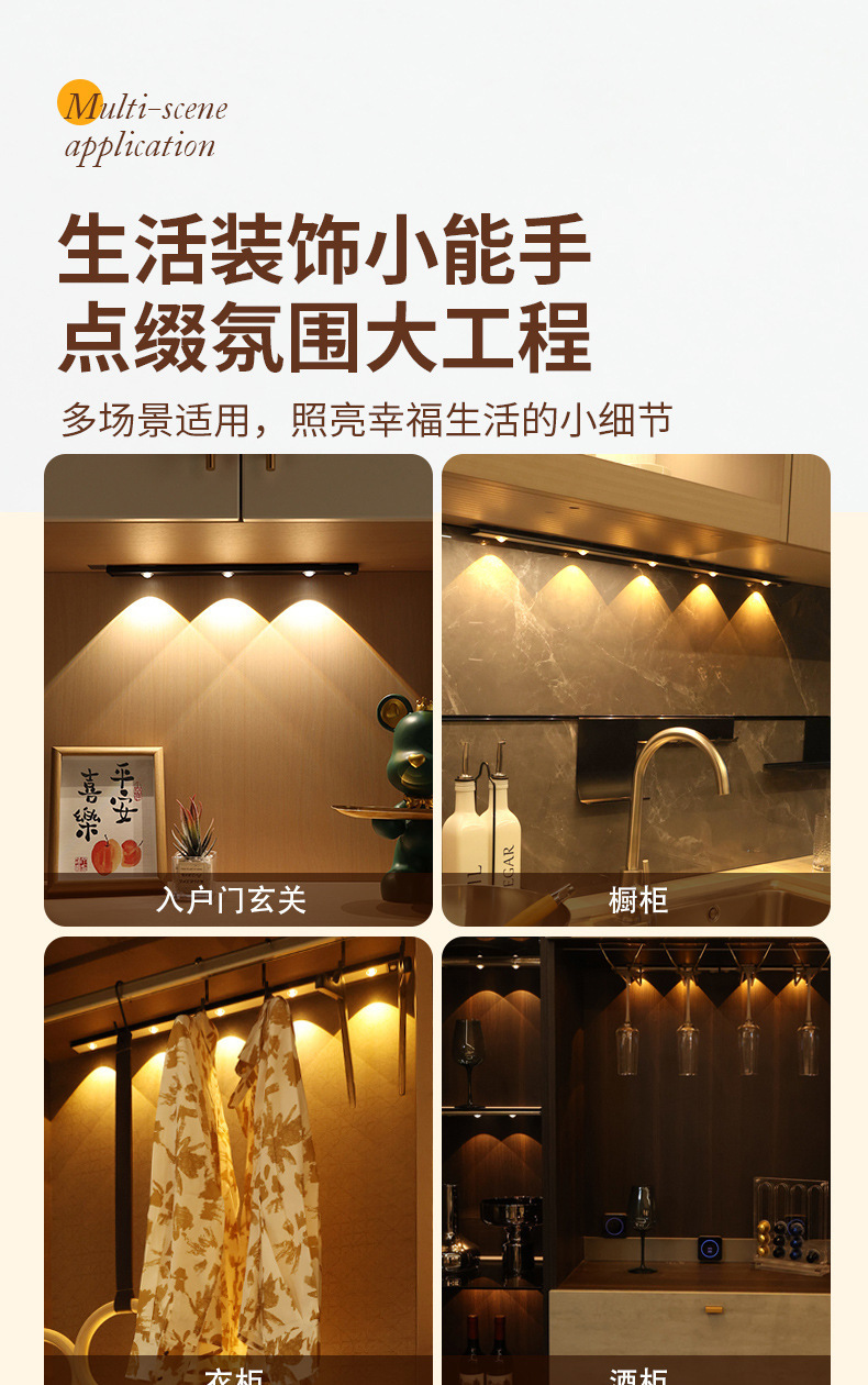 인체감지 LED 캐비닛 조명, 충전식 자석 부착형 와인 캐비닛 및 신발장 조명 스트립, 센서 조명, 지능형 조명 제어스토어 가기