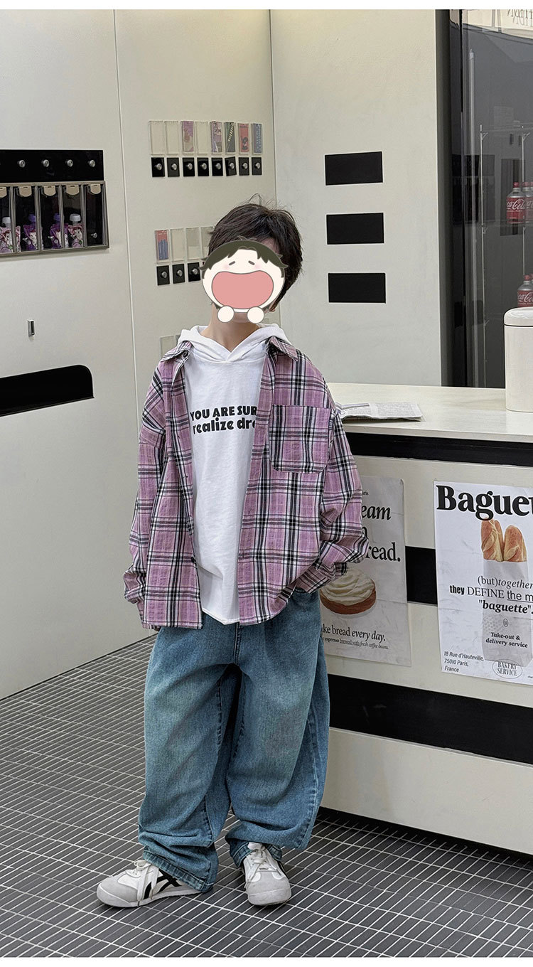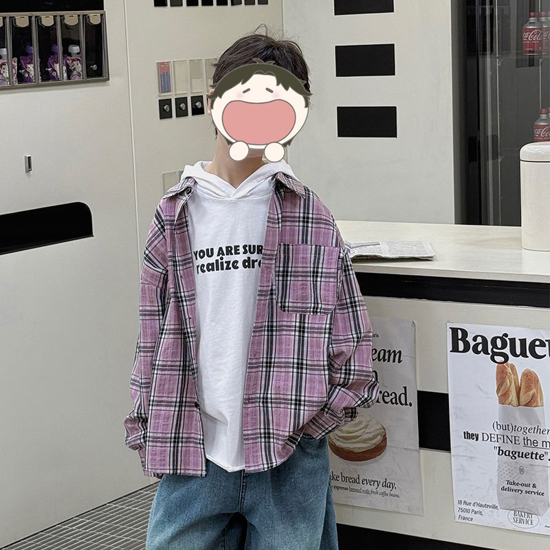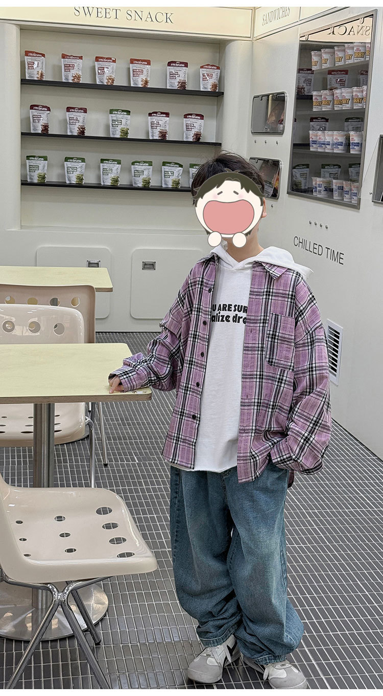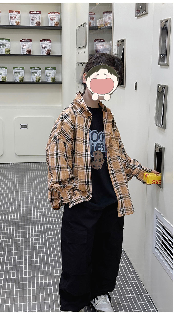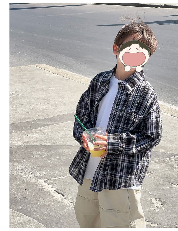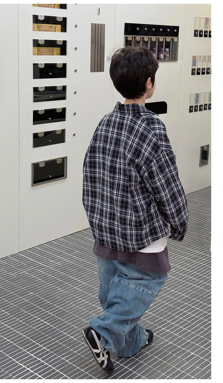 유행 아동복 소년 격자 무늬 셔츠 어린이 봄 셔츠 2025 새로운 긴팔 트렌디 긴팔 재킷스토어 가기