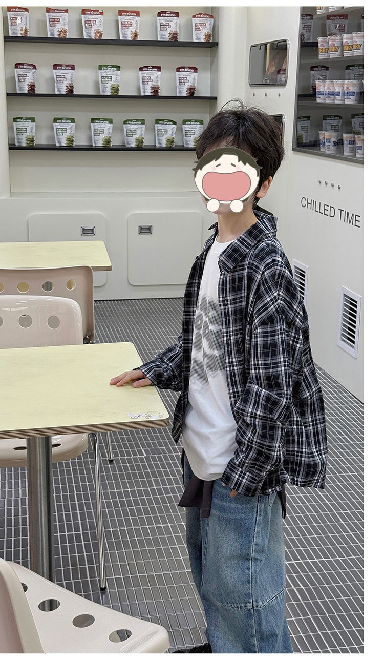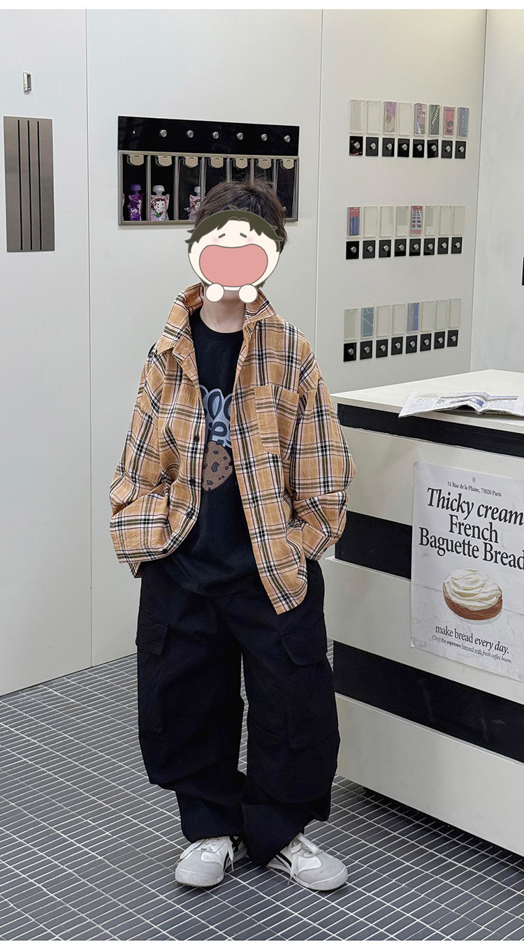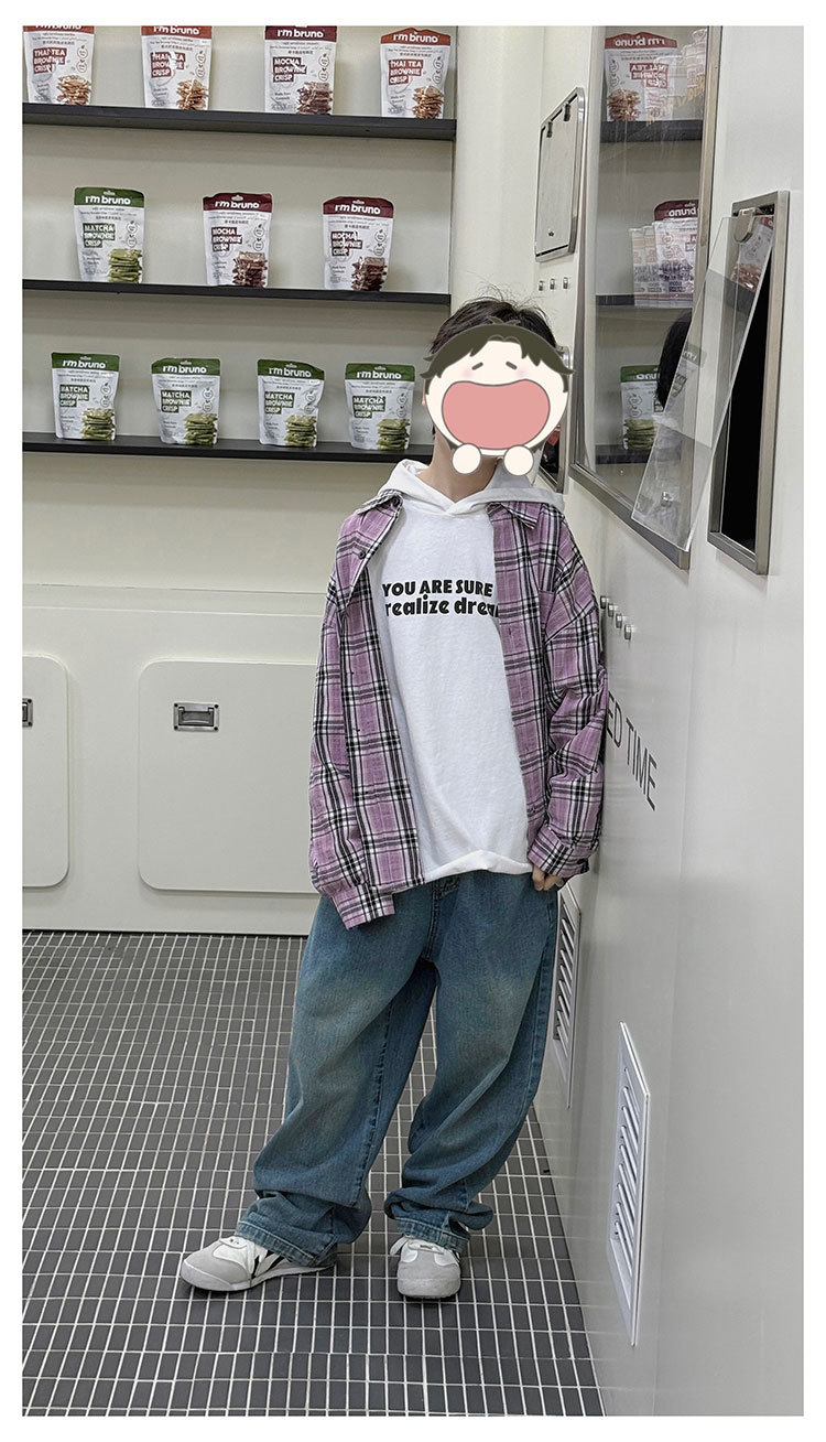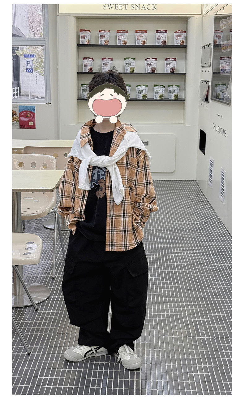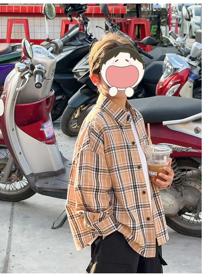 유행 아동복 소년 격자 무늬 셔츠 어린이 봄 셔츠 2025 새로운 긴팔 트렌디 긴팔 재킷스토어 가기