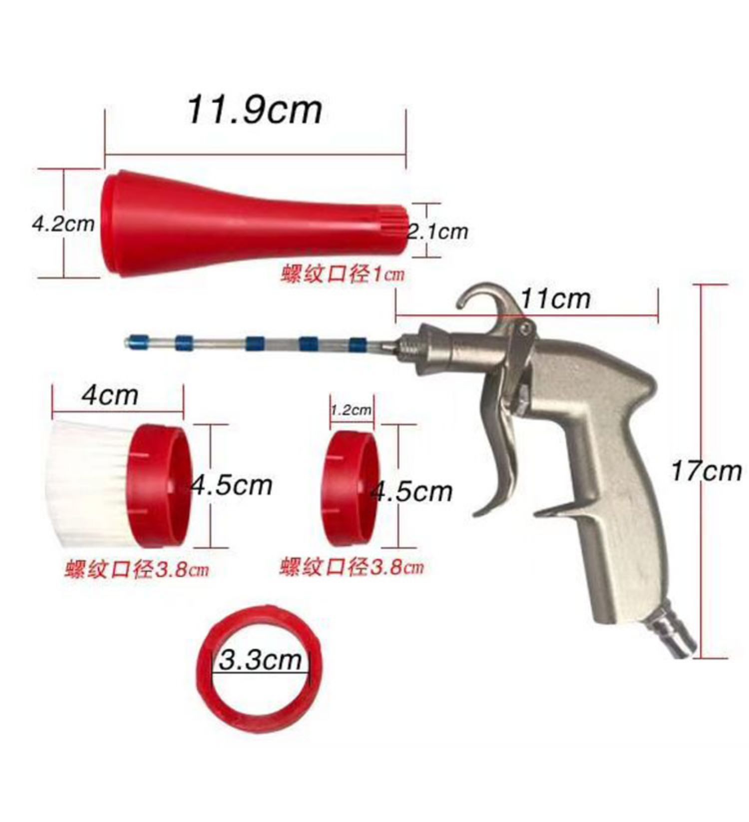 • 빨간색 브러시 먼지 송풍 총 + 브러시 헤드 + 투척 튜브