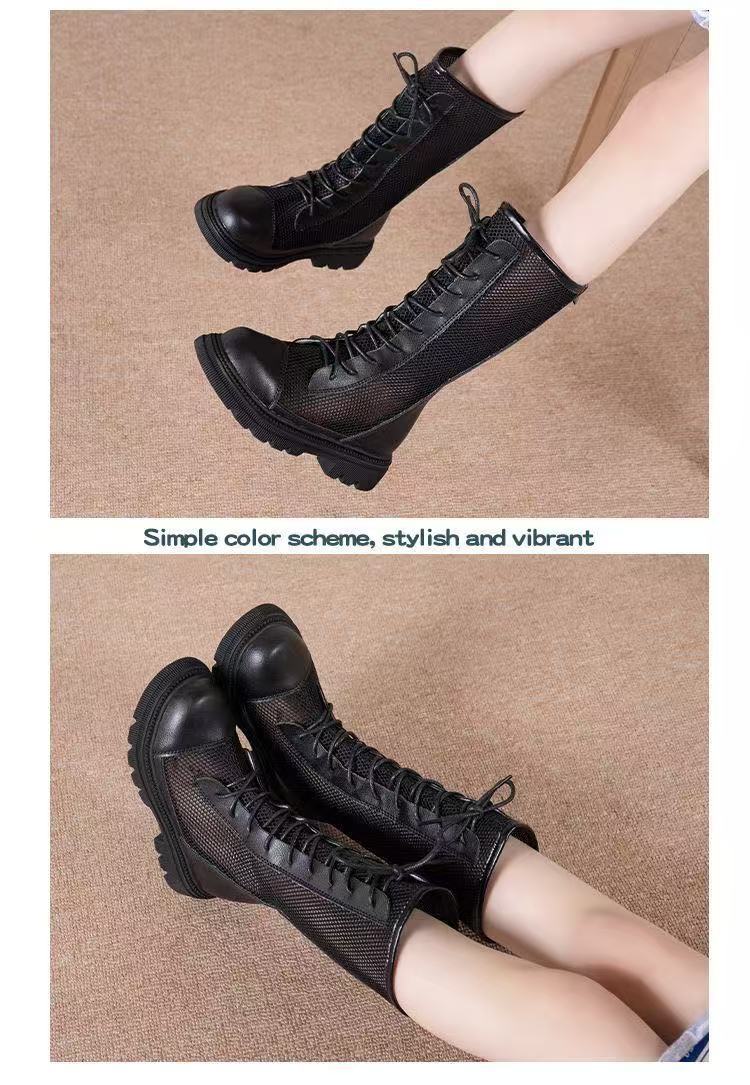 메쉬 긴 짧은 부츠 소녀 여름 얇은 2025 새로운 기사 부츠 높은 배럴 통기성 메쉬 부츠스토어 가기