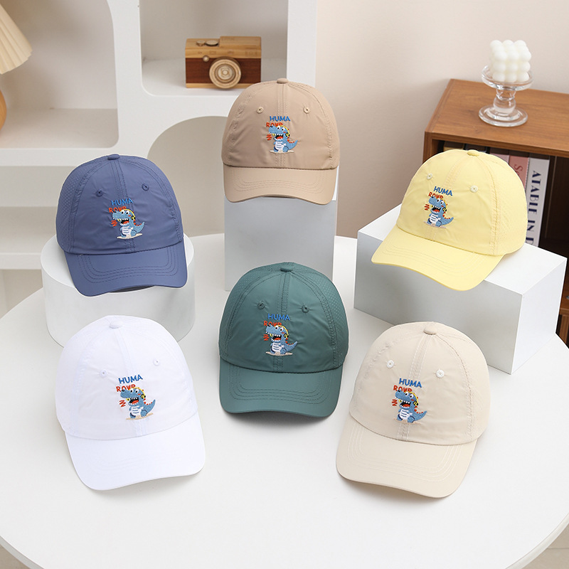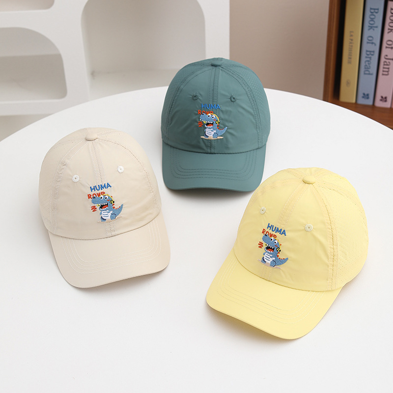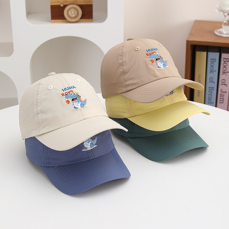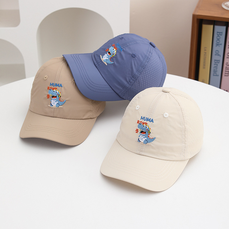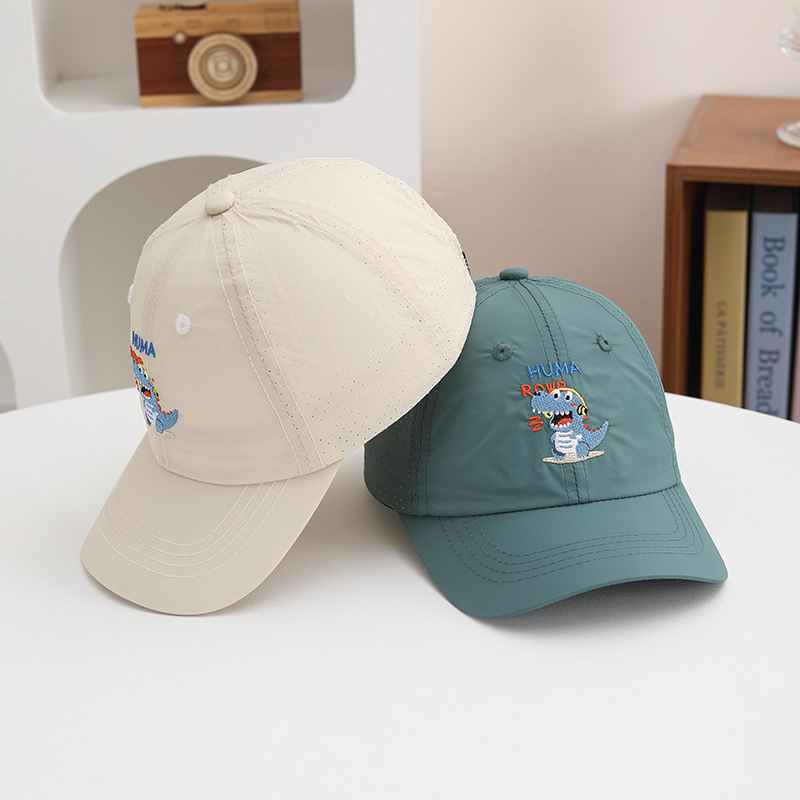 국경 간 어린이 야구 모자 자수 공룡 만화 빠른 건조 모자 3-8 세 소년 야외 하이킹 캡 차양