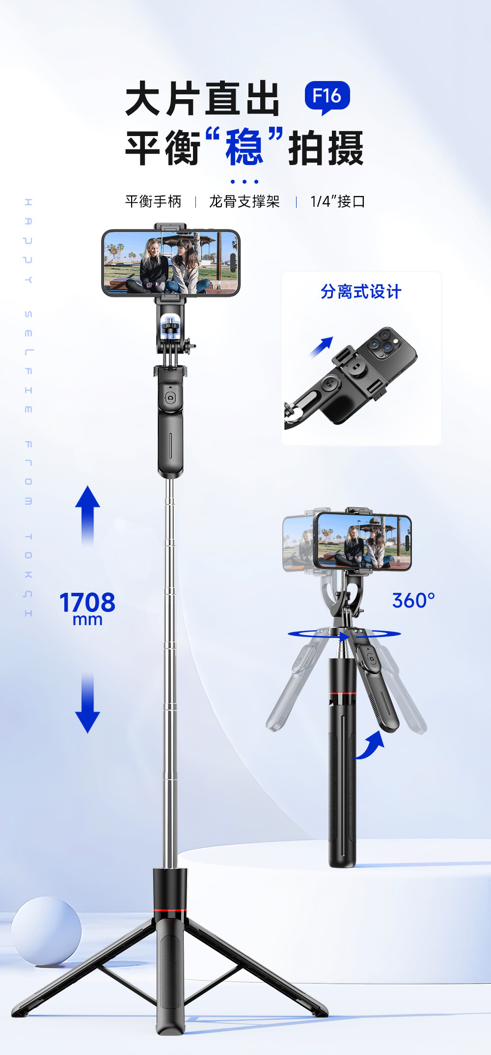 F16 셀카 스틱 손떨림 방지 확장형 다기능 블루투스 원격 제어 라이브 셀카 스틱 삼각대 전화 홀더