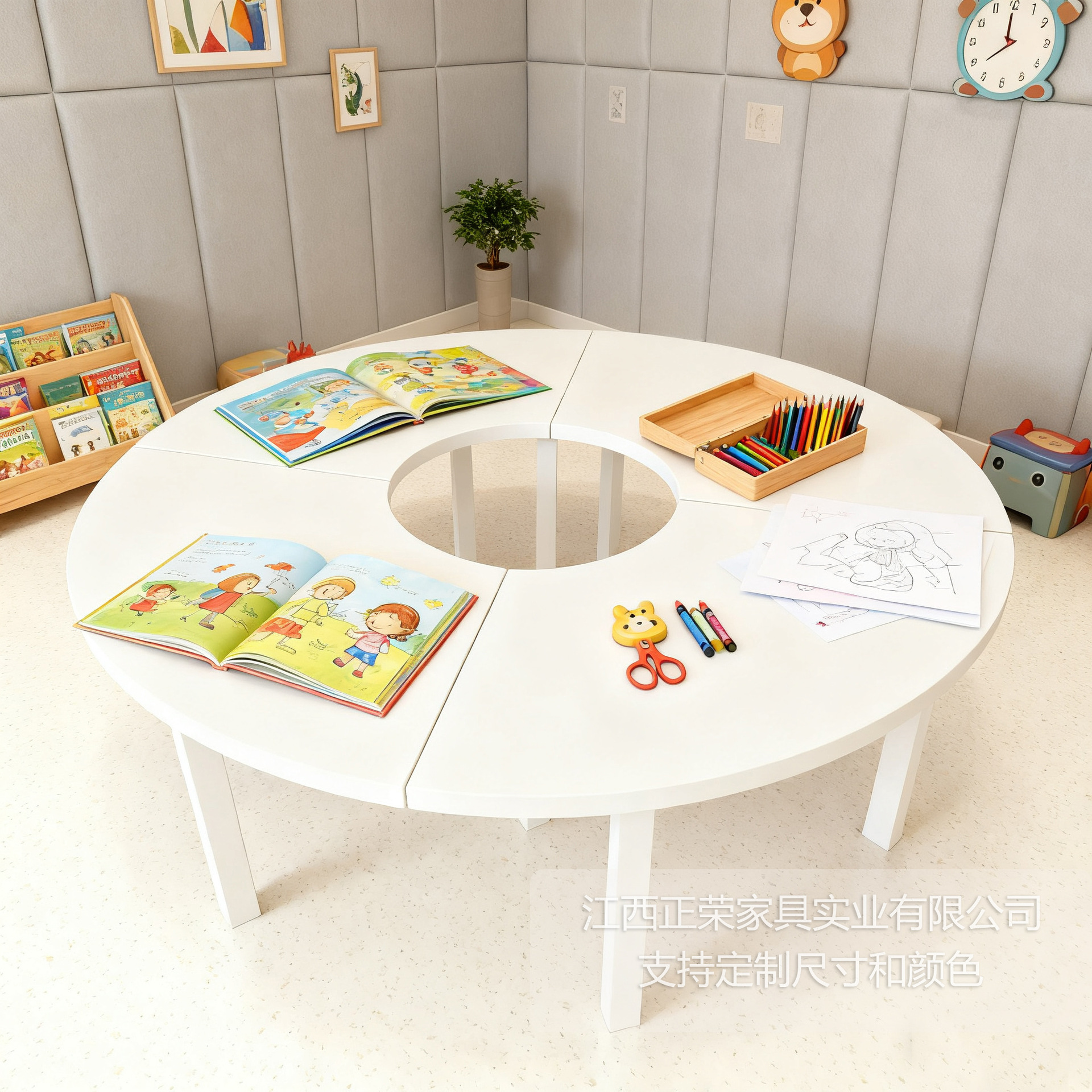 • (목재 프레임 비용 포함) 올 화이트 두꺼운 속이 빈 원형 조합 테이블 166*166*55cm