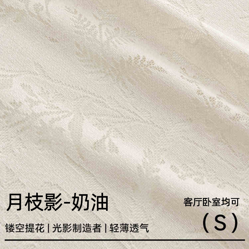 문 브랜치 섀도우 자카드 거즈 커튼 반 쉐이딩 크림 화이트 커튼 창 화면 빈 패브릭 발코니 프렌치 라이트 전송 원사스토어 가기