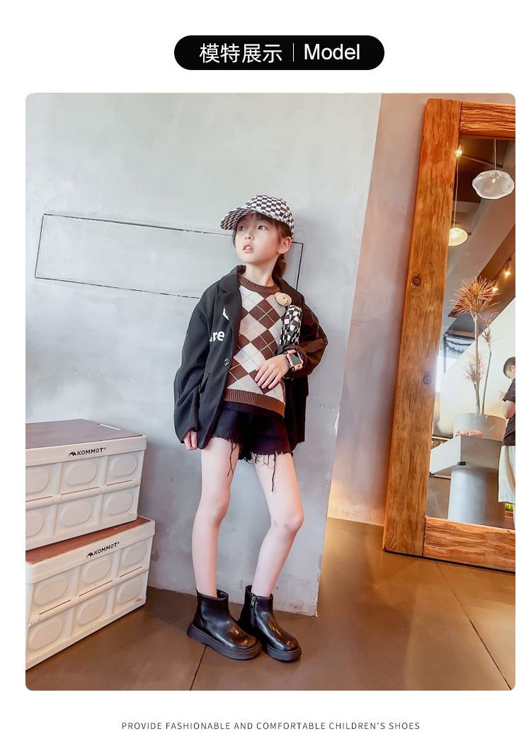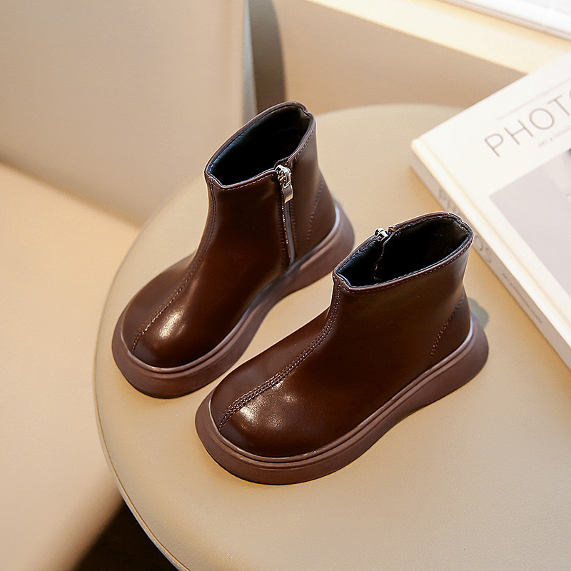 어린이 패션 짧은 부츠 23 겨울 새로운 스타일 소녀 가죽 부츠 어린 소녀 싱글 부츠 아기 플러스 벨벳 따뜻한 마틴 부츠 도매