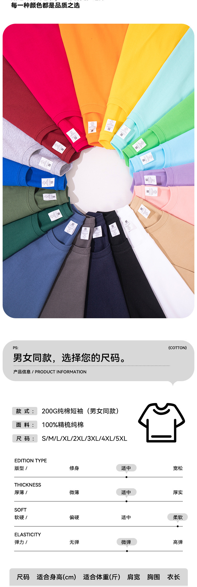 순수 코튼 티셔츠 반팔 200g 남성용 반팔 솔리드 컬러 티셔츠 트렌디 브랜드 프린트 로고 크로스 보드 도매 남성 의류 재고 있음스토어 가기