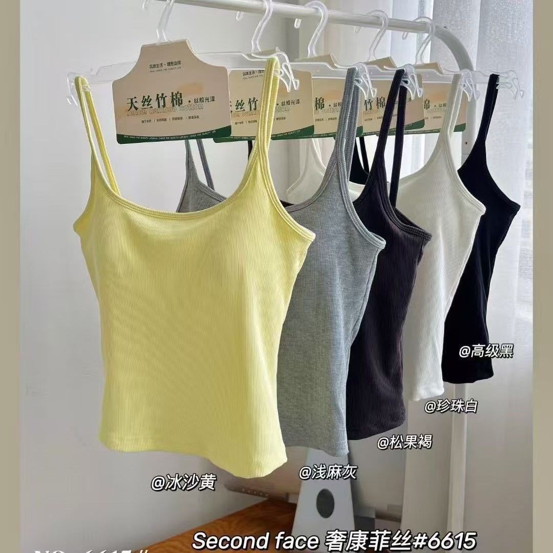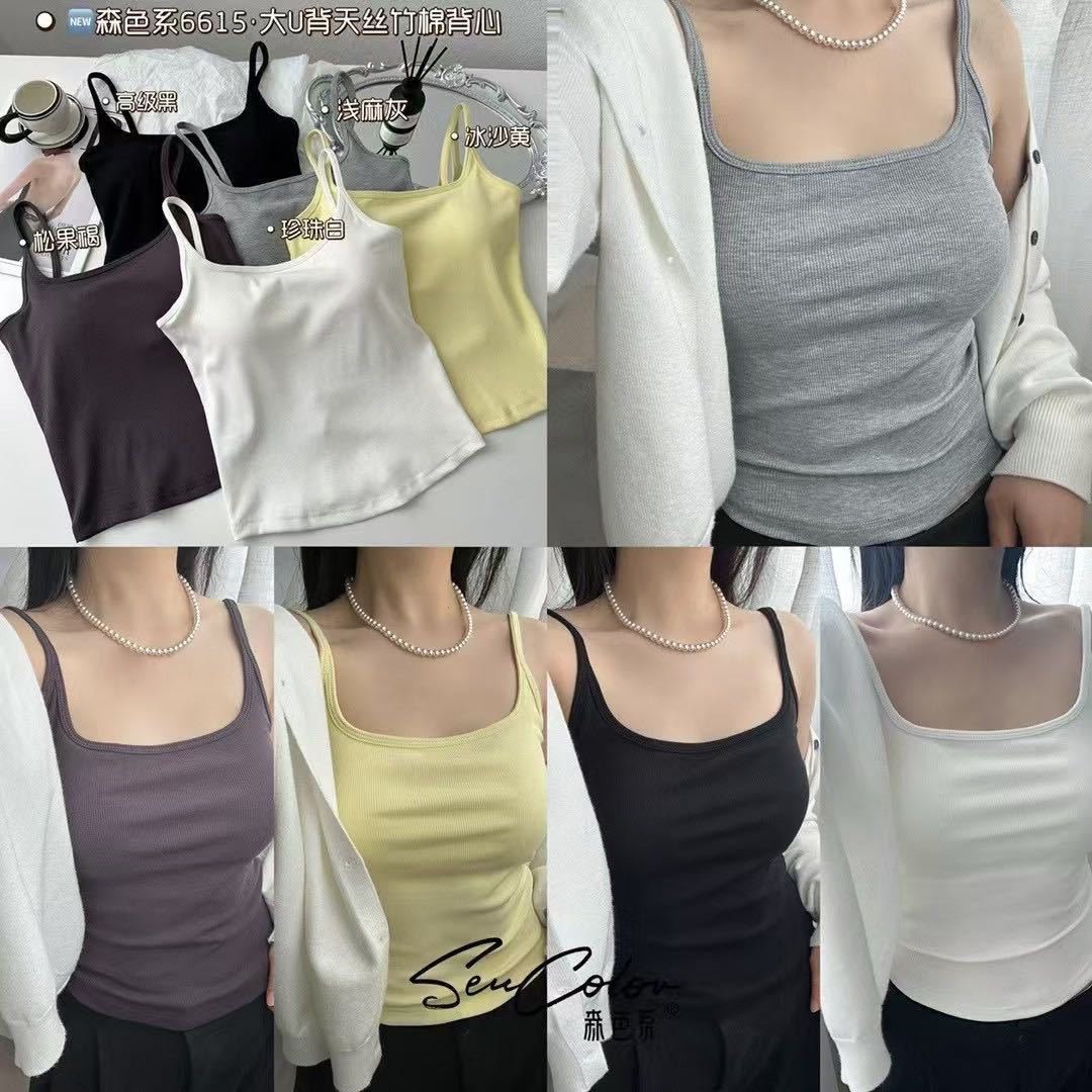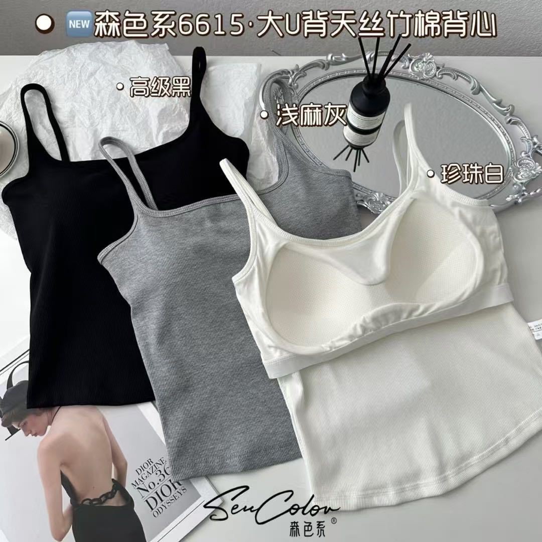 6615 # 가슴 패드와 여름 스파이스 소녀 빈 U 자형 아름다운 백 디자인 카미 솔 여성베이스 슬림 올 매치 탑스토어 가기
