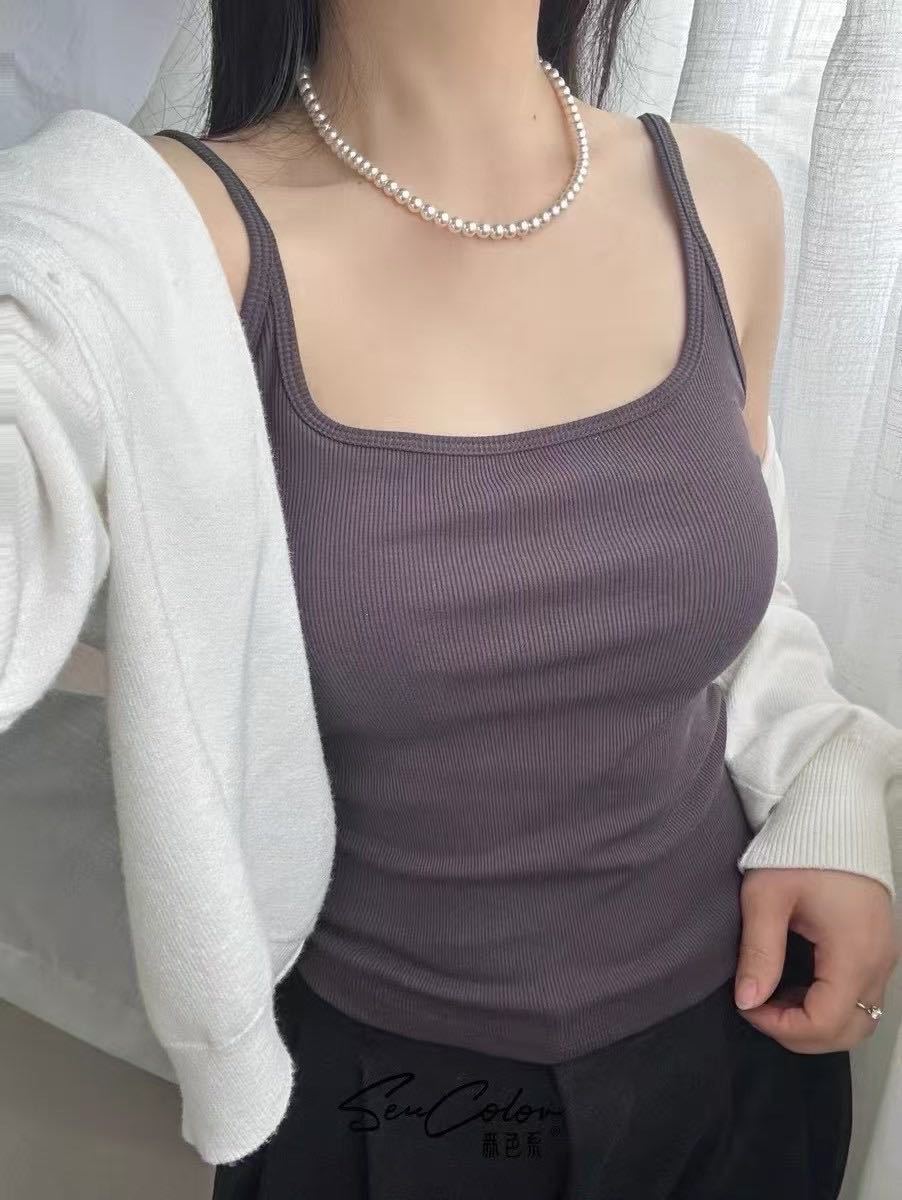 6615 # 가슴 패드와 여름 스파이스 소녀 빈 U 자형 아름다운 백 디자인 카미 솔 여성베이스 슬림 올 매치 탑