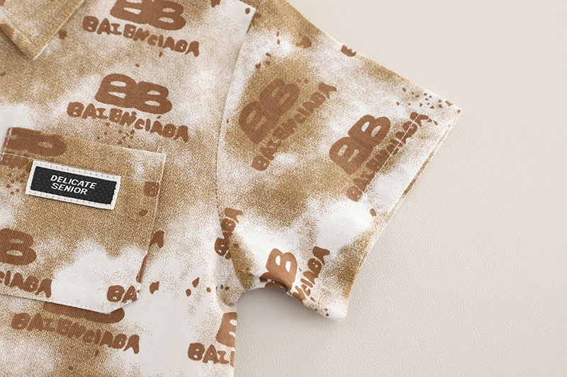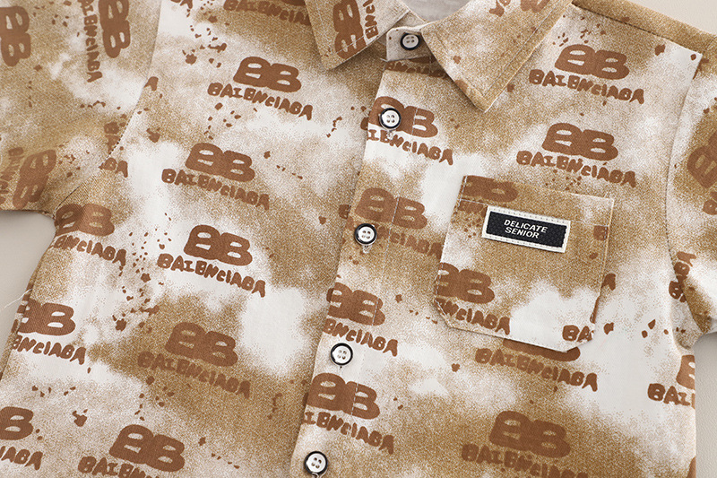 소년 여름 반팔 정장 2025 새로운 스타일의 캐주얼 레터 셔츠 3 피스 세트 중소 어린이를위한 드롭 배송