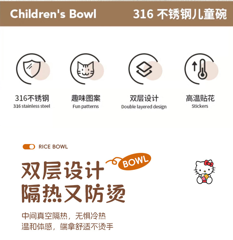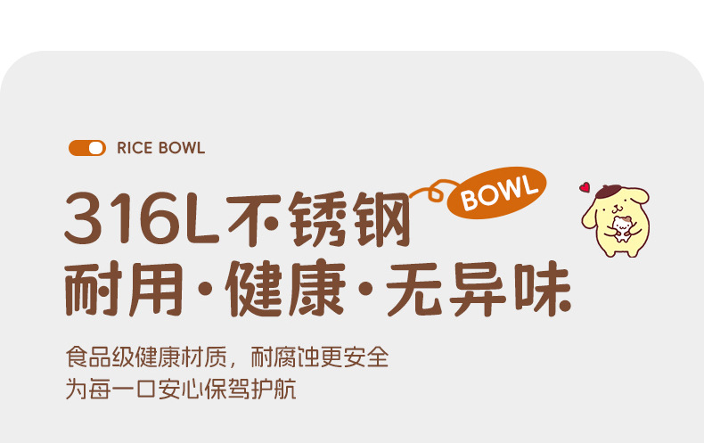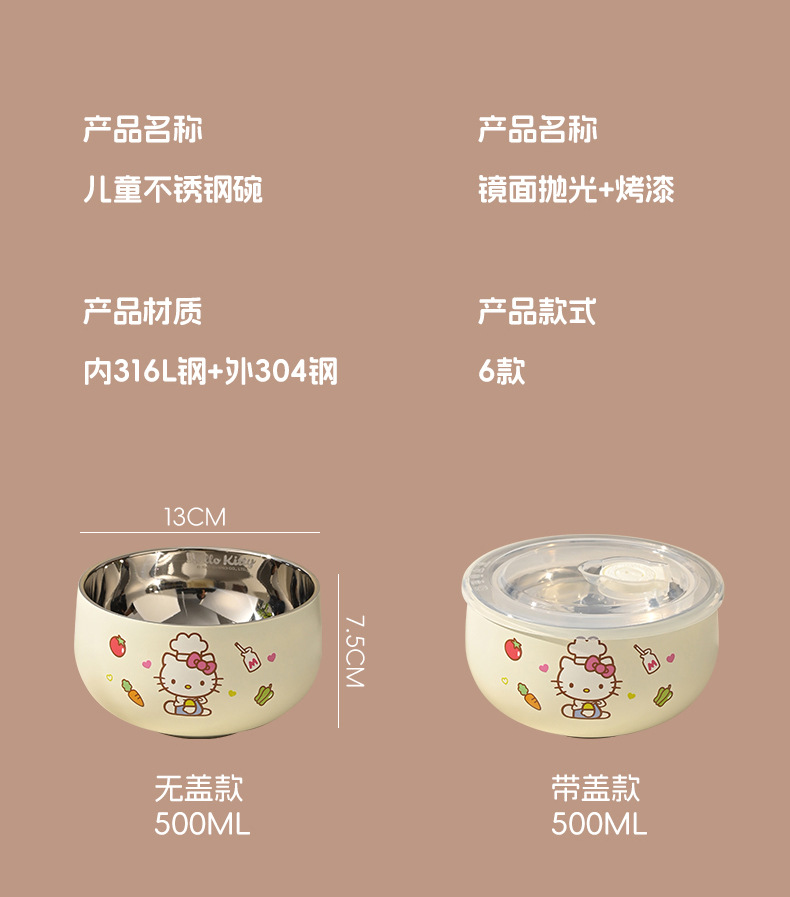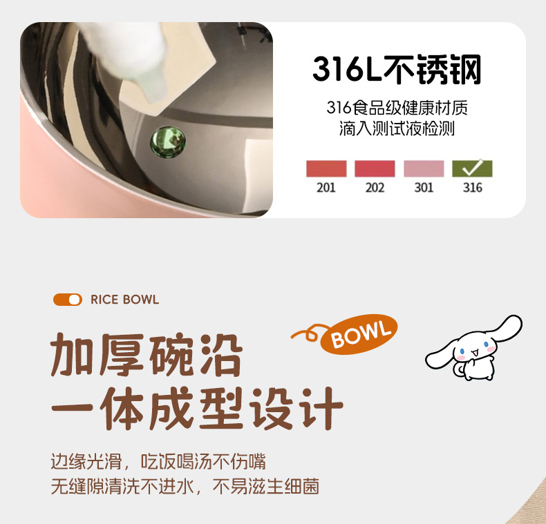산리오 316 스테인리스 만화 캐릭터 어린이용 쌀그릇, 방진, 세척 용이, 휴대 간편, 신제품 도매스토어 가기