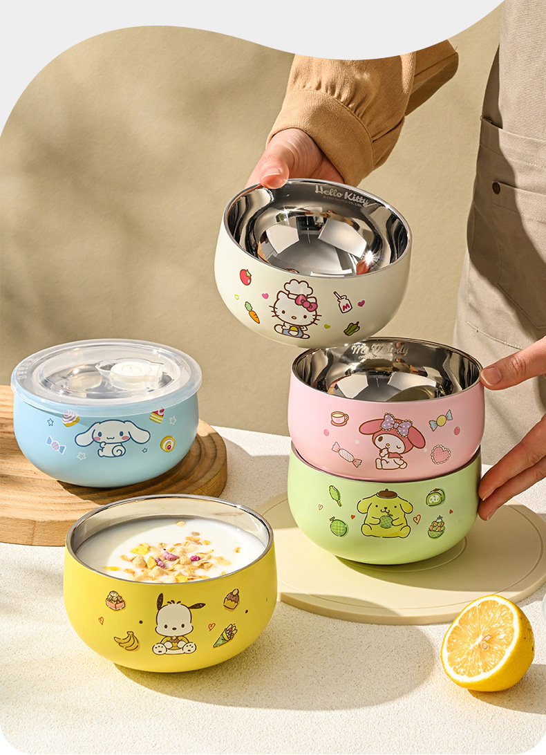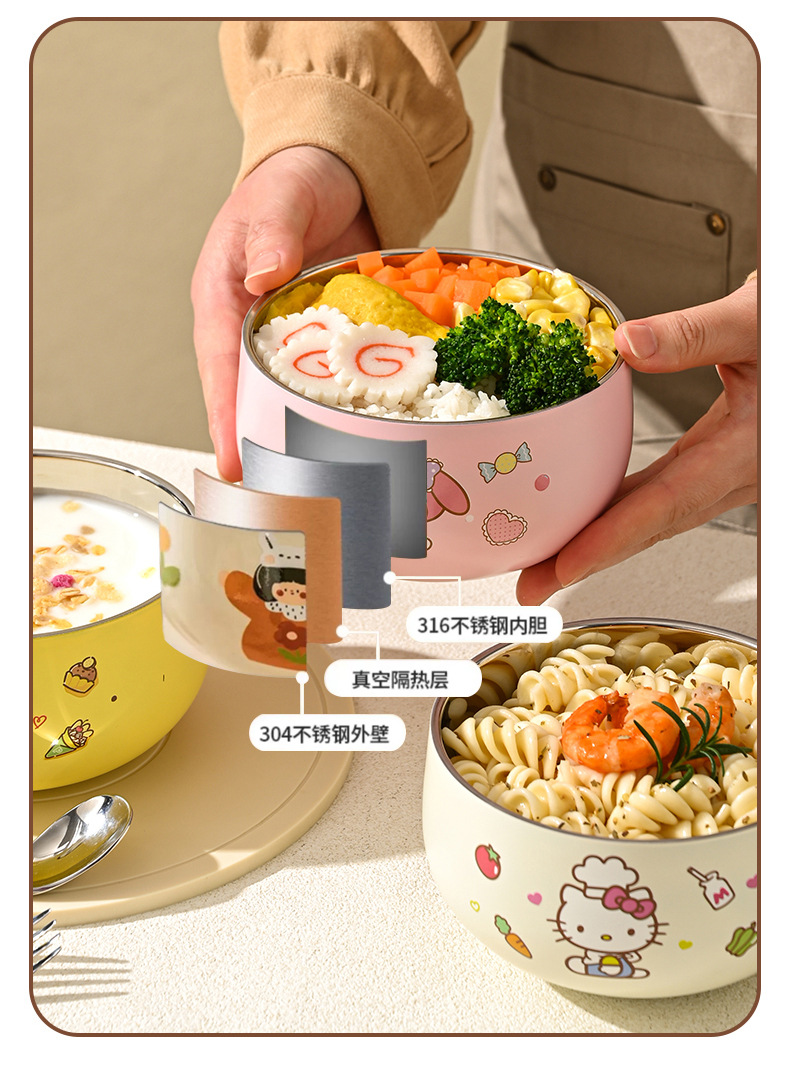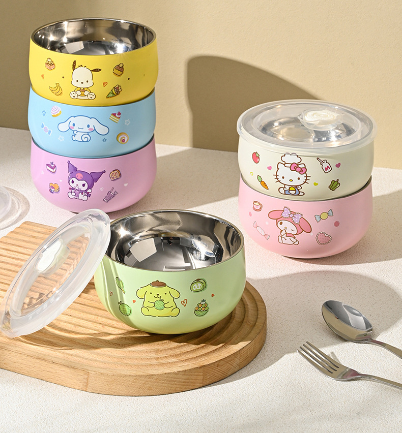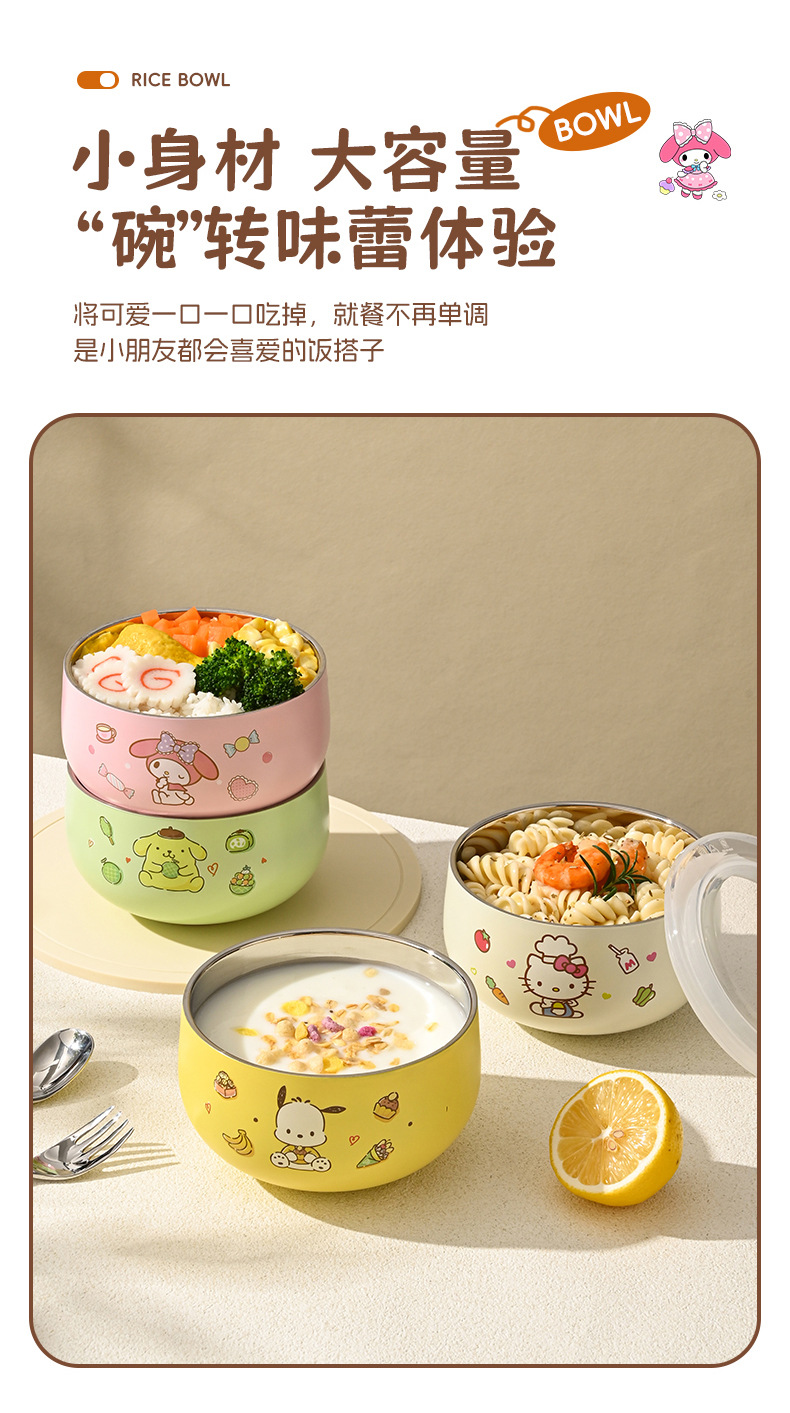 산리오 316 스테인리스 만화 캐릭터 어린이용 쌀그릇, 방진, 세척 용이, 휴대 간편, 신제품 도매