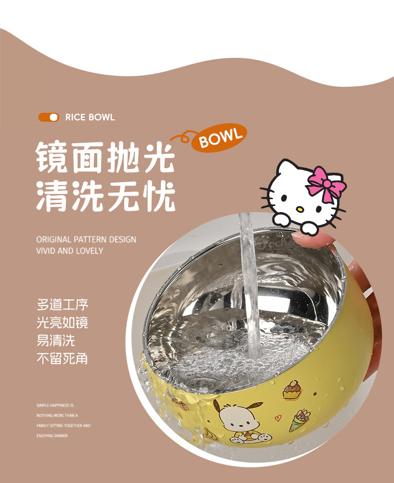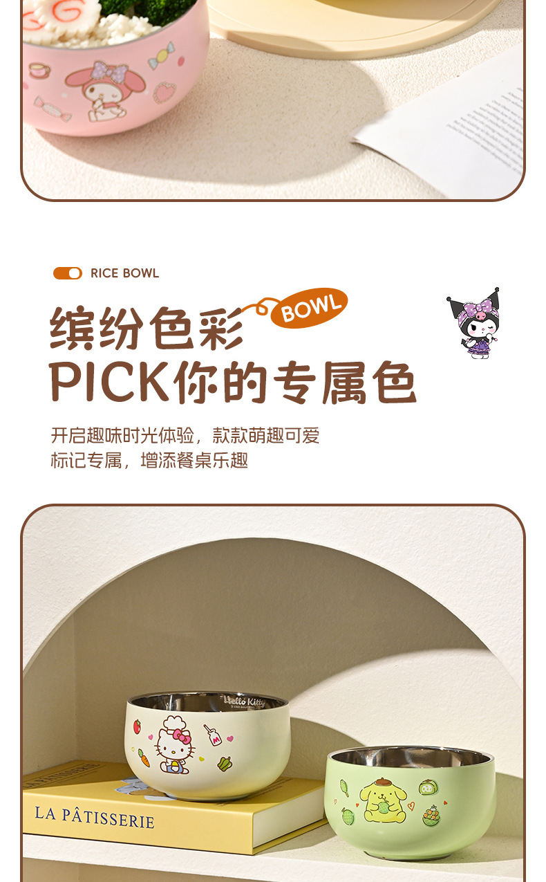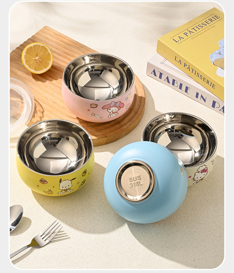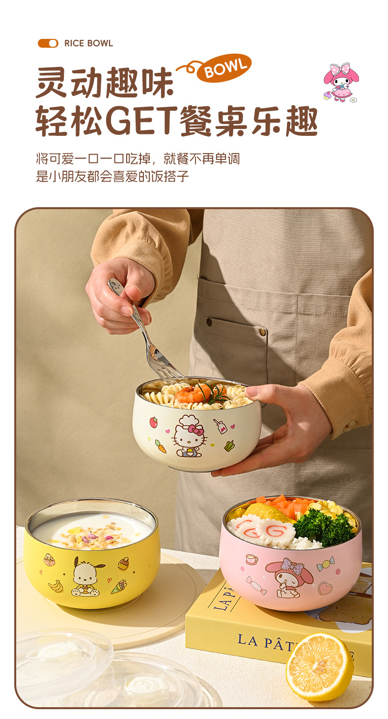 산리오 316 스테인리스 만화 캐릭터 어린이용 쌀그릇, 방진, 세척 용이, 휴대 간편, 신제품 도매
