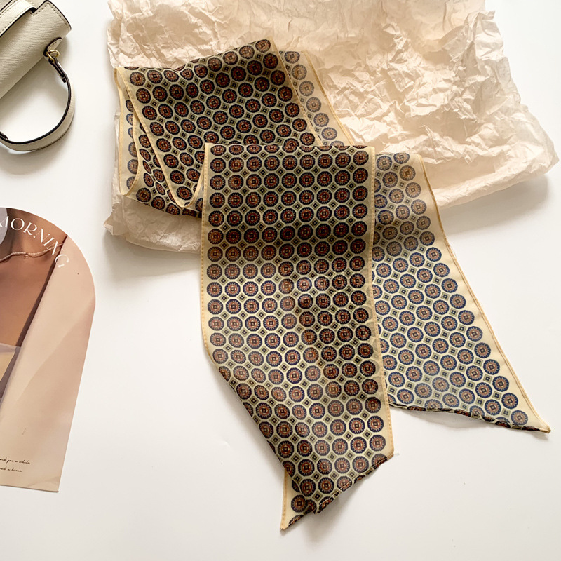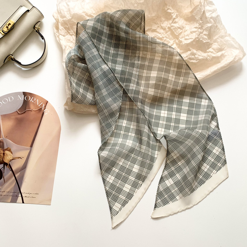봄, 가을 여성용 뾰족한 체크무늬 작은 긴 머리띠 스카프, 허리 스카프, 가방 리본, 장식 스카프, 머리 스카프, 다용도스토어 가기