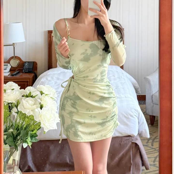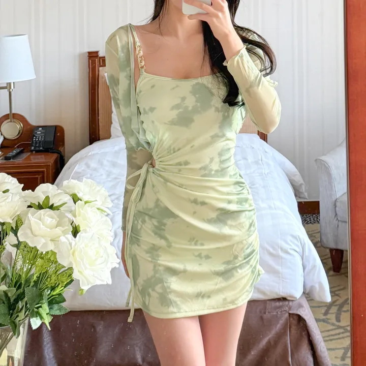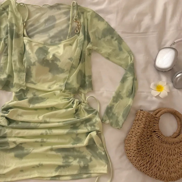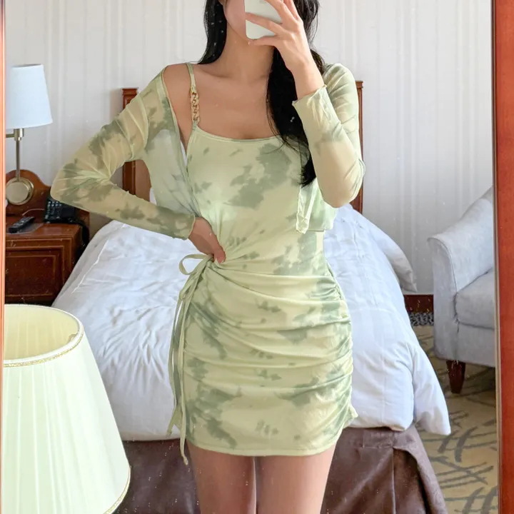 여성을위한 녹색 작은 신선한 수영복 여름 2025 새로운 패션 커버 업 배꼽 커버 슬리밍 순수한 욕망 스타일 휴가 원피스 수영복
