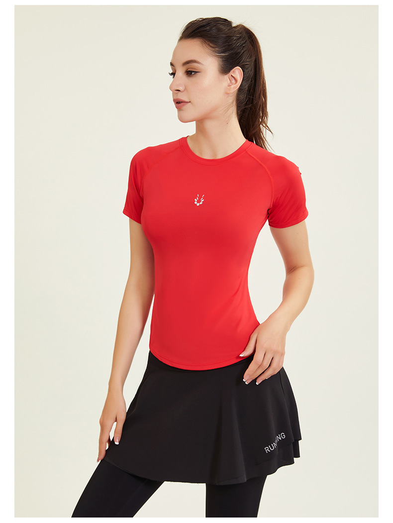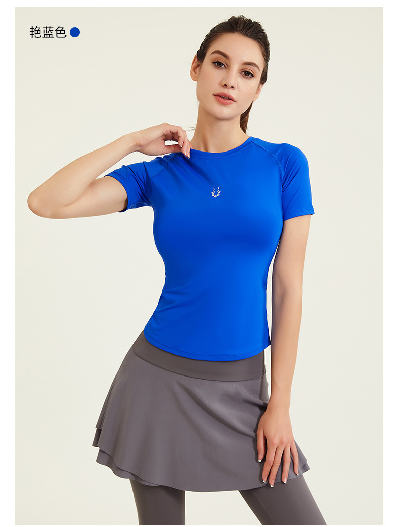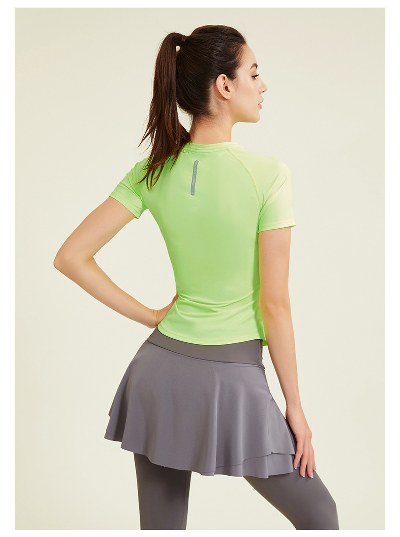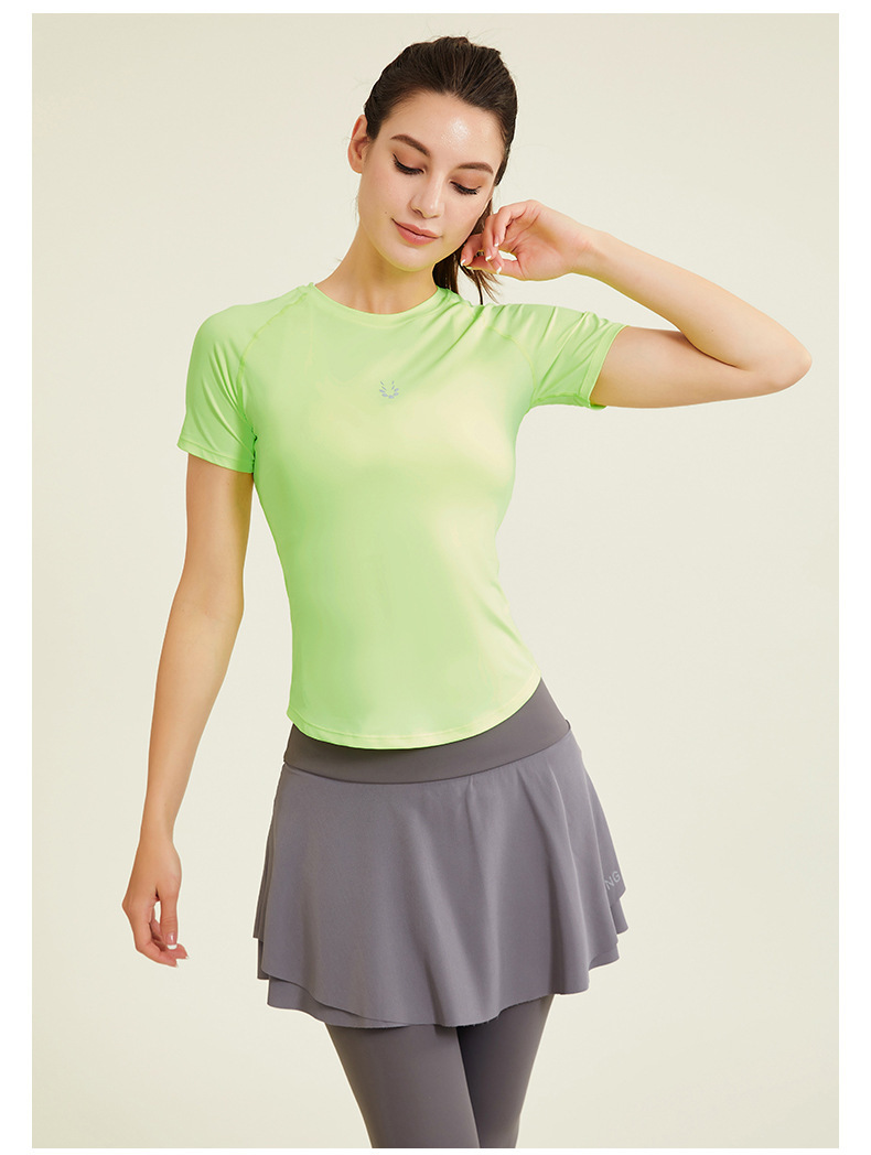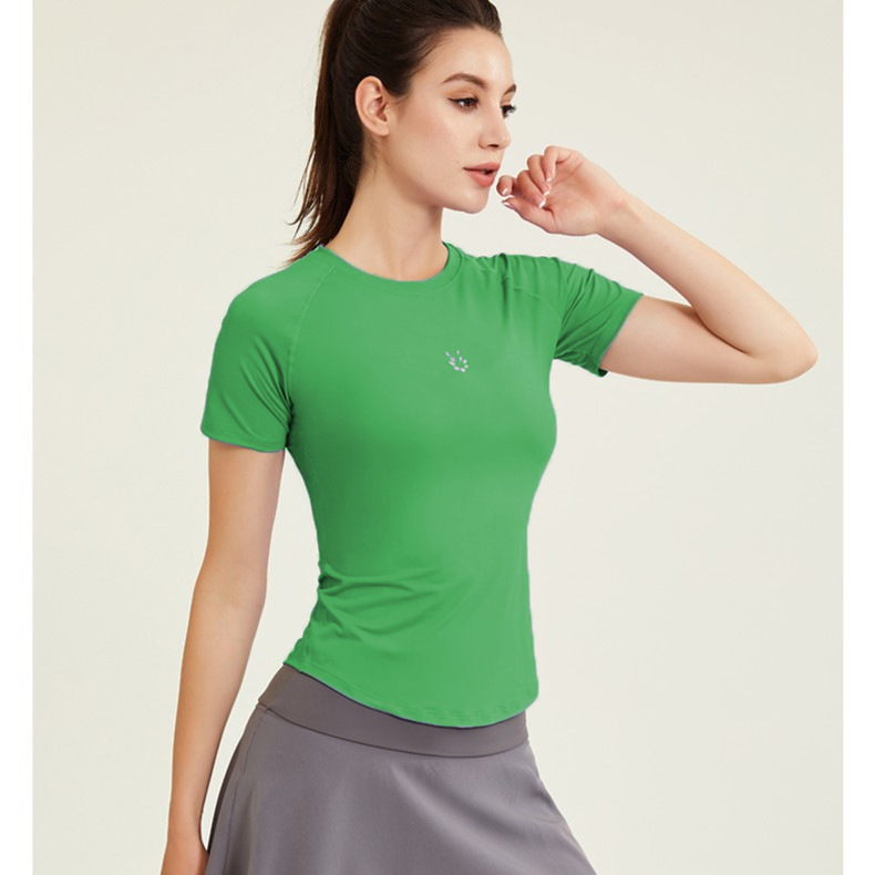 알몸 피트니스 의류 여성용 스포츠 티셔츠 얇은 빠른 건조 슬림 핏 라운드 넥 라글란 슬리브 러닝 슬림핏 인터넷 인기 요가 의류스토어 가기