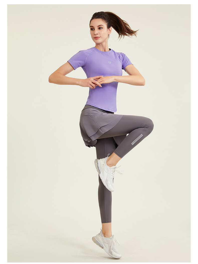 알몸 피트니스 의류 여성용 스포츠 티셔츠 얇은 빠른 건조 슬림 핏 라운드 넥 라글란 슬리브 러닝 슬림핏 인터넷 인기 요가 의류