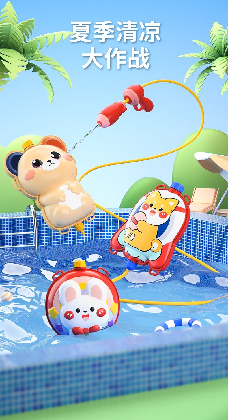 • 소형 플랫 모델 [수영링 곰 배낭 물총] 약 1000ml.