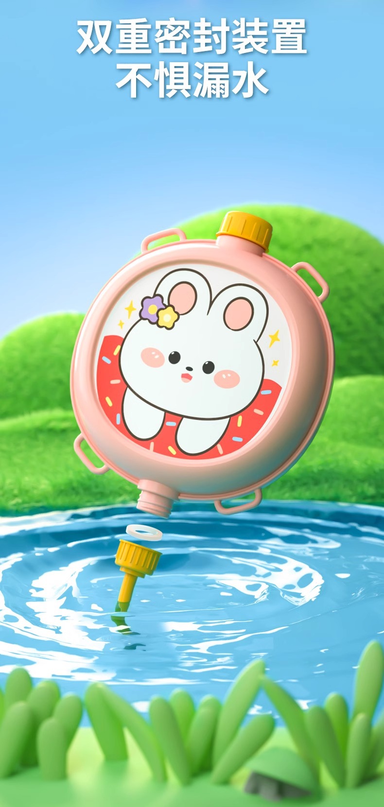• 작은 평면형 [귀여운 토끼 백팩 물총] 약 1000ml.