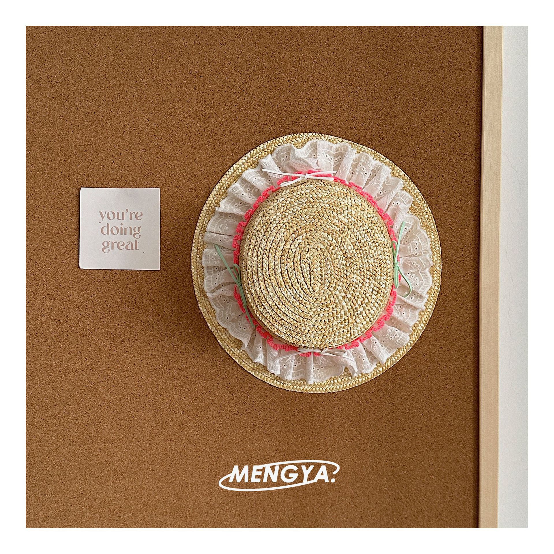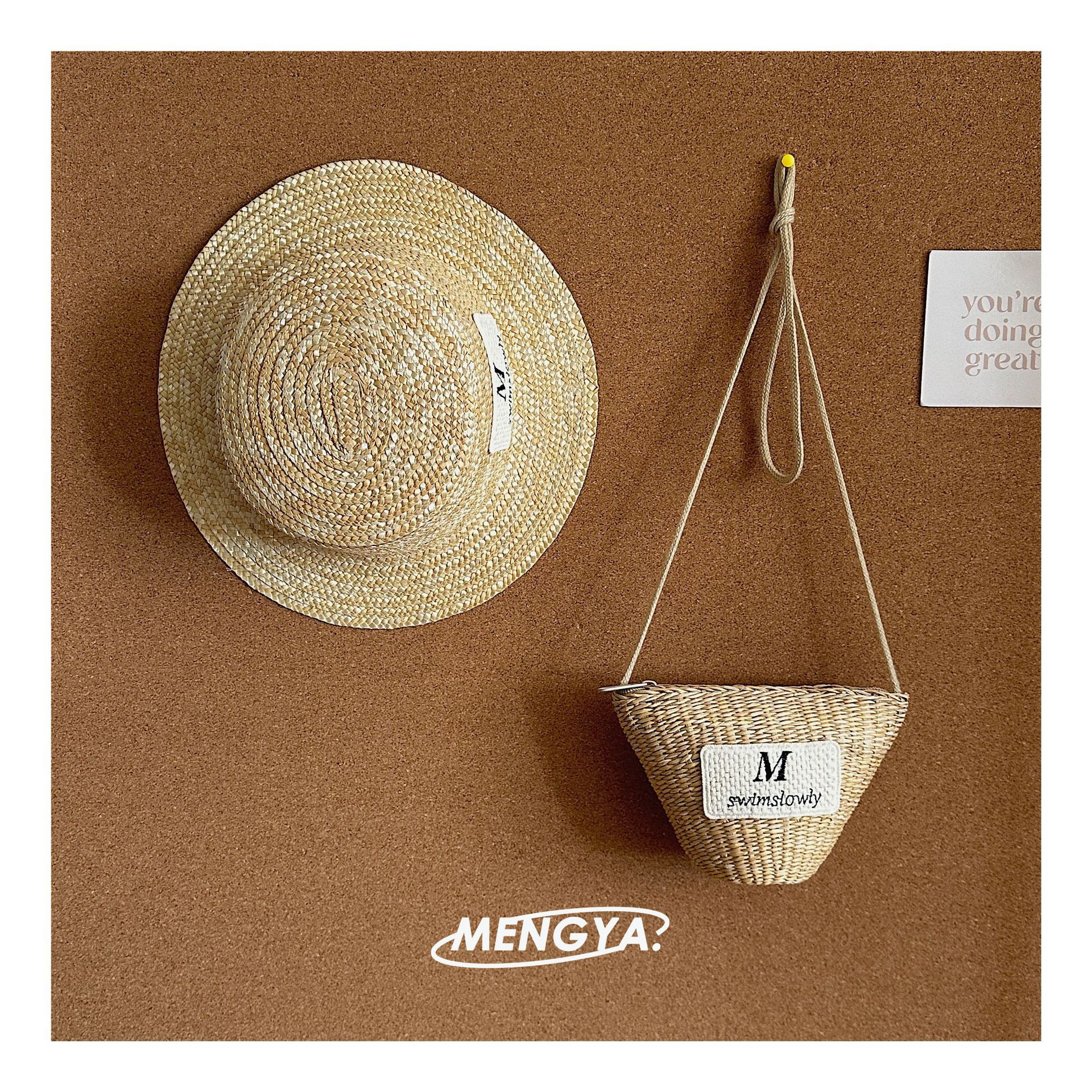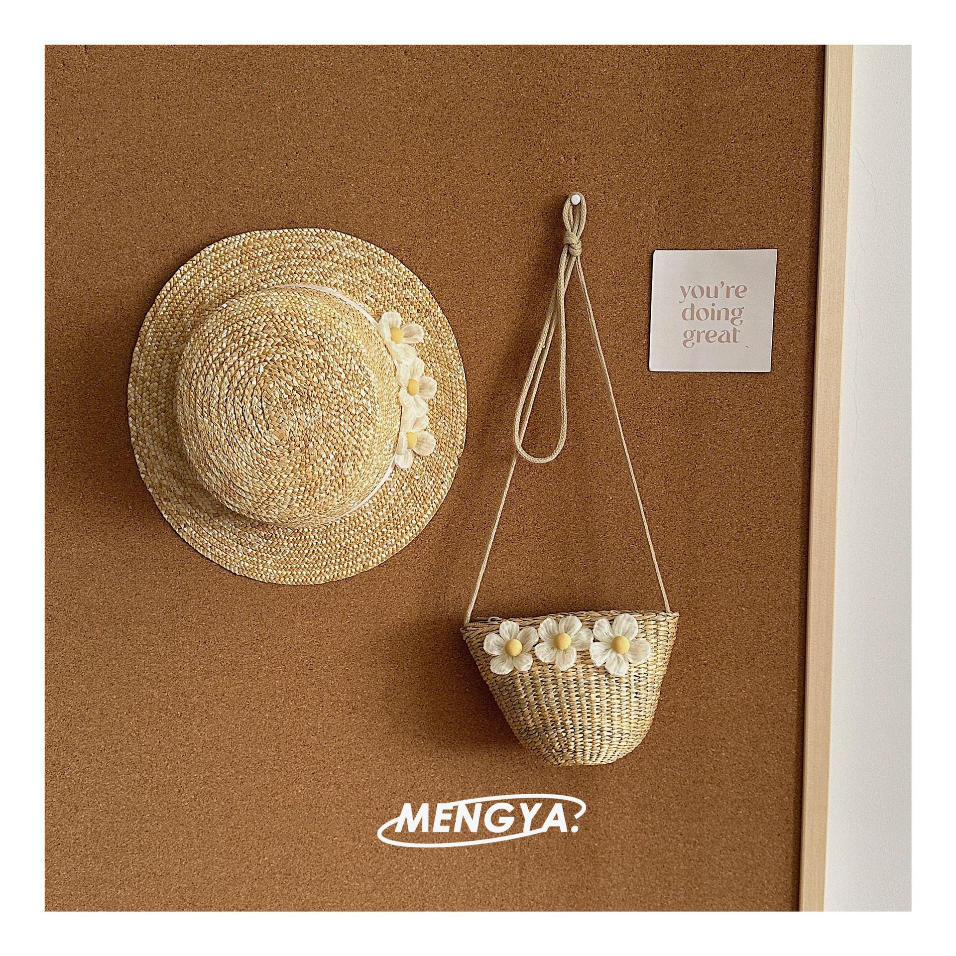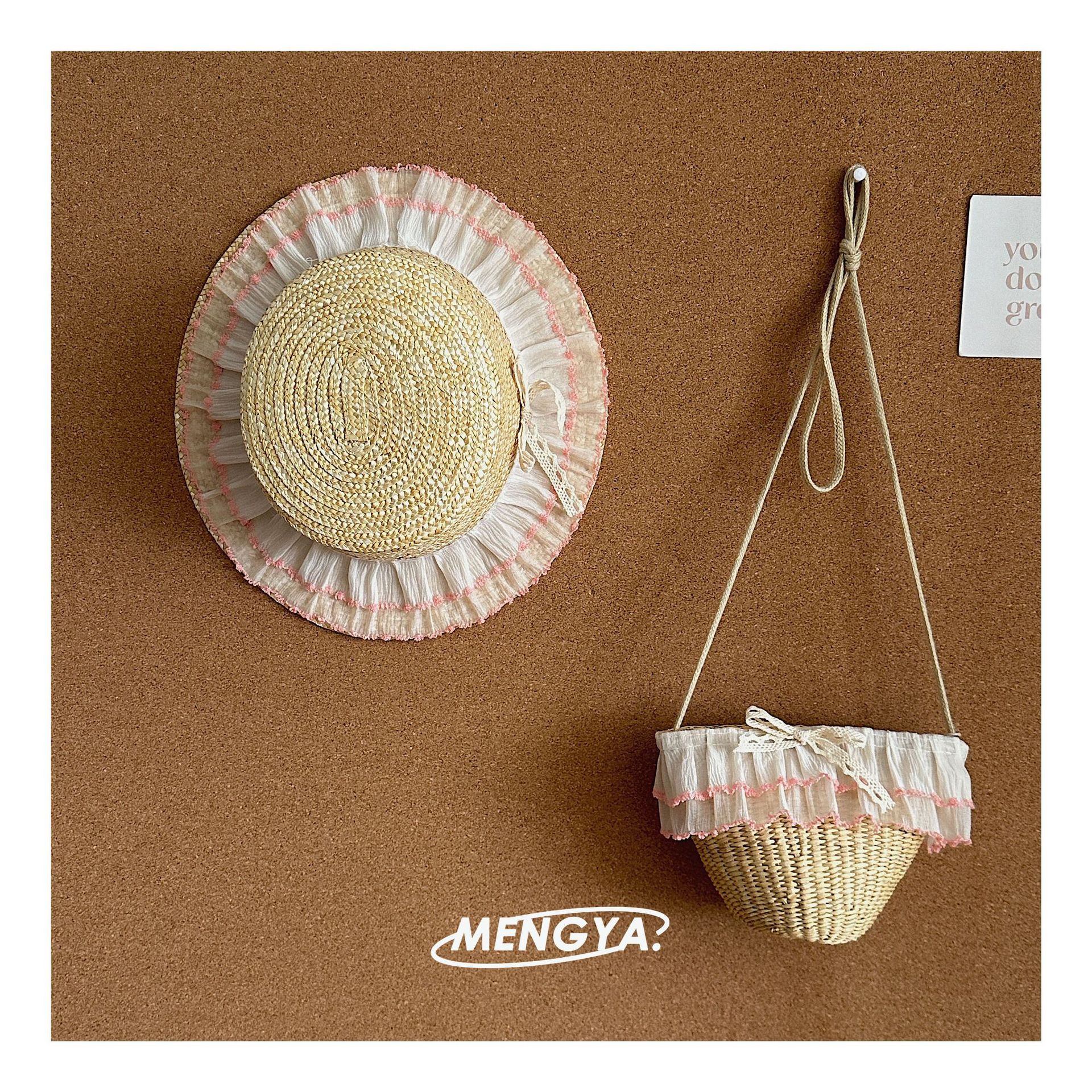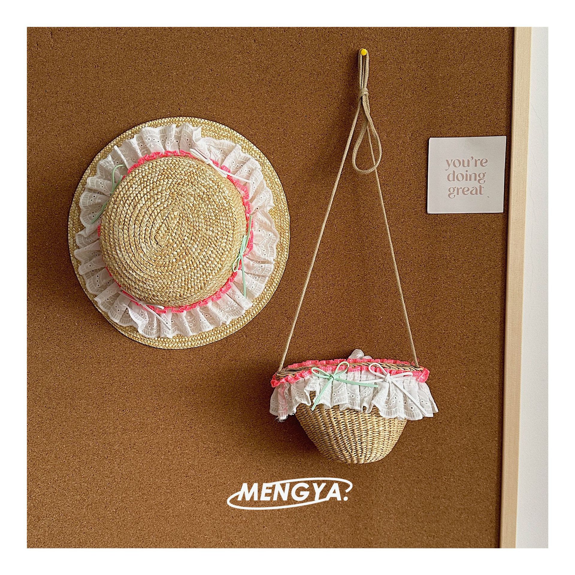 어린이 모자 여름 밀 밀짚 모자 소녀 선 스크린 모자 소녀 레이스 꽃 햇빛 모자 가방 세트 요정