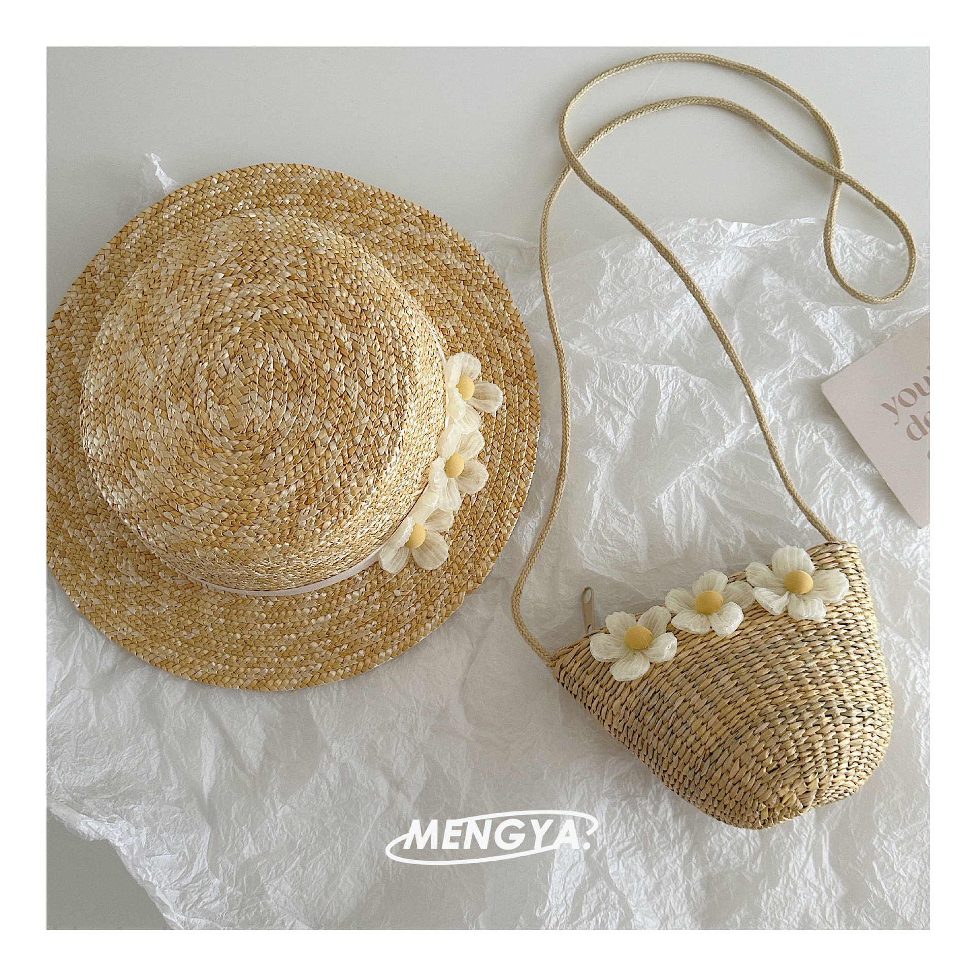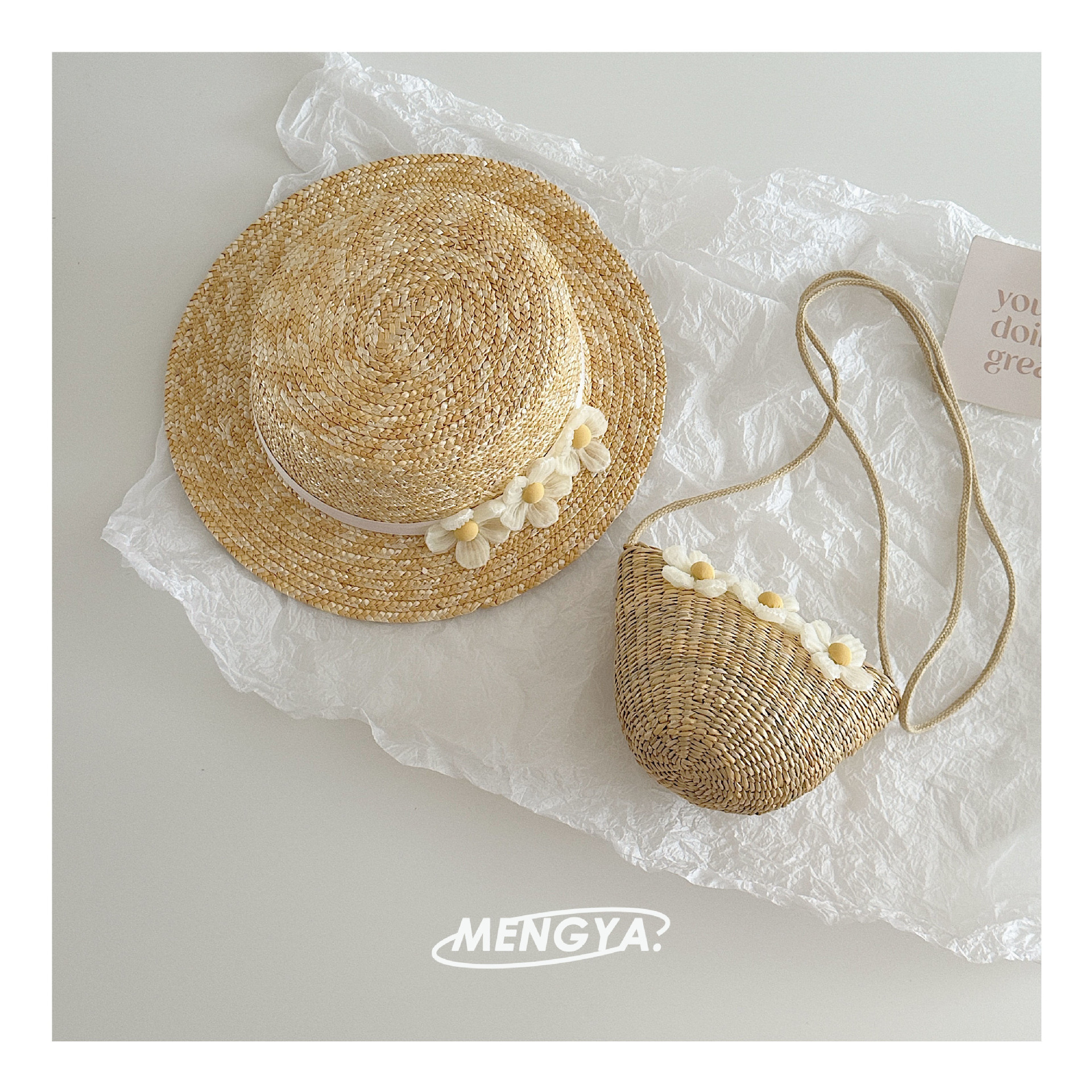 어린이 모자 여름 밀 밀짚 모자 소녀 선 스크린 모자 소녀 레이스 꽃 햇빛 모자 가방 세트 요정스토어 가기