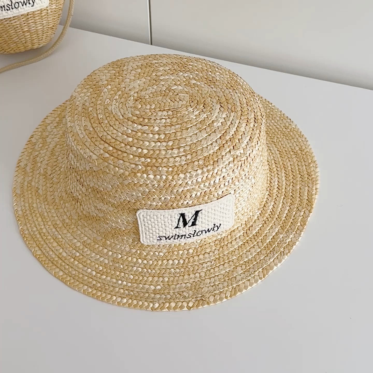 • 극세사 리본 밀짚모자