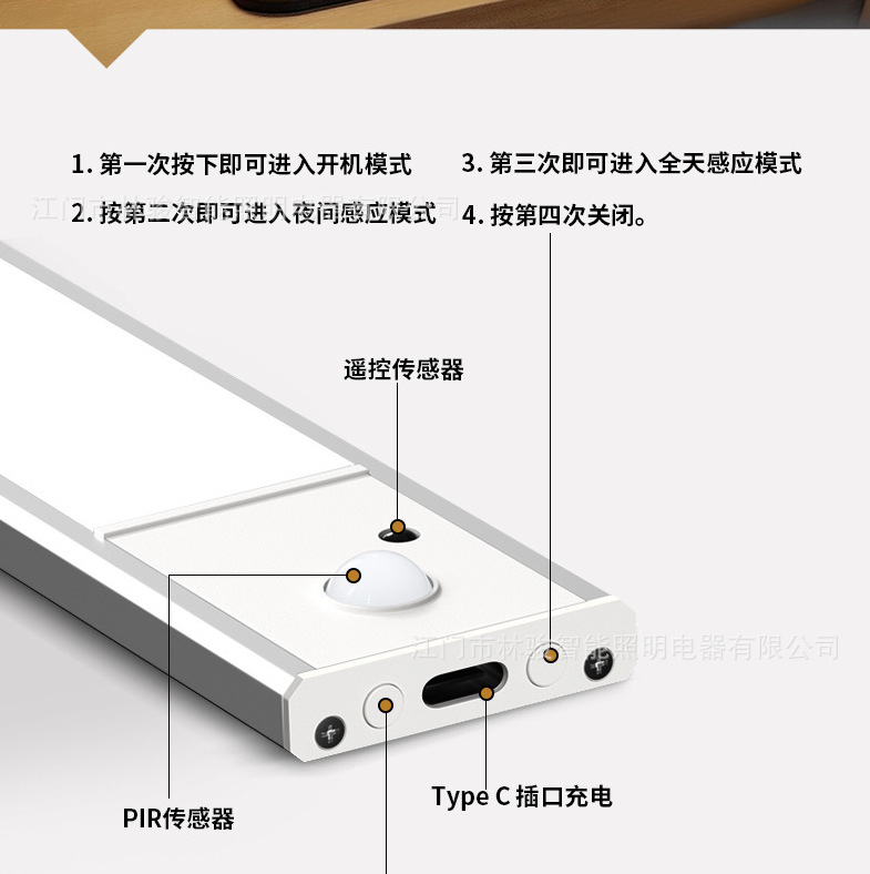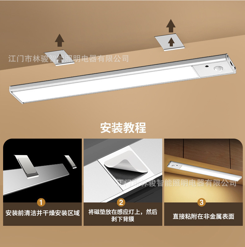 초박형 지능형 인체 유도 램프 무선 자기 초박형 긴 주방 옷장 와인 캐비닛 침실 야간 조명