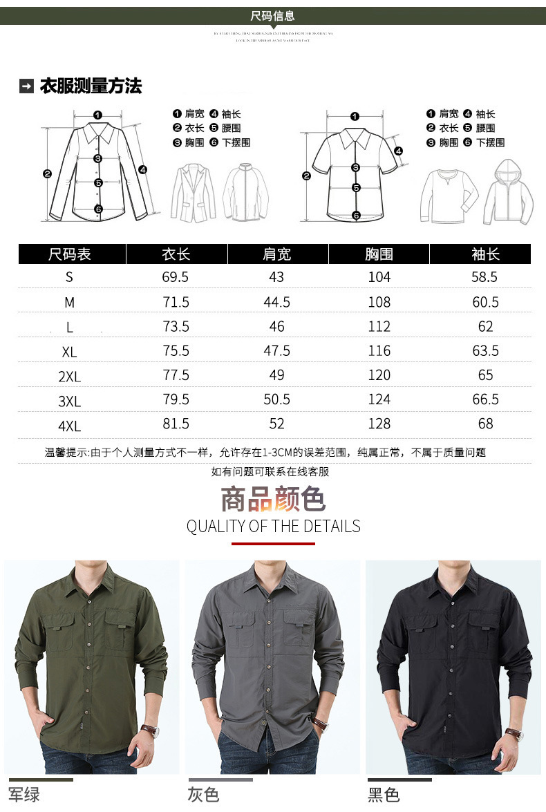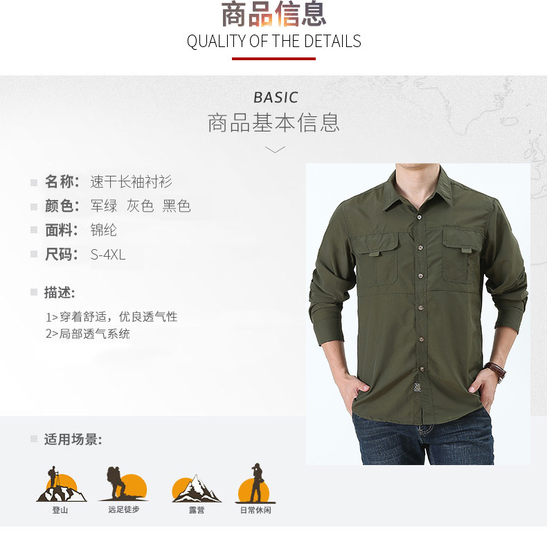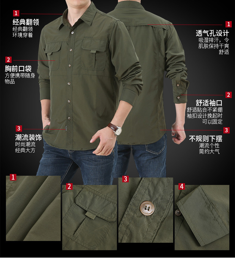 국경 간 AliExpress 긴팔 셔츠 남성 봄, 여름 야외 셔츠 속건 의류 남성 신작 대형 작업복 1981
