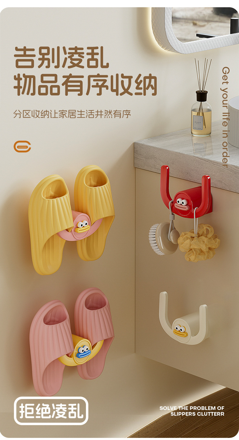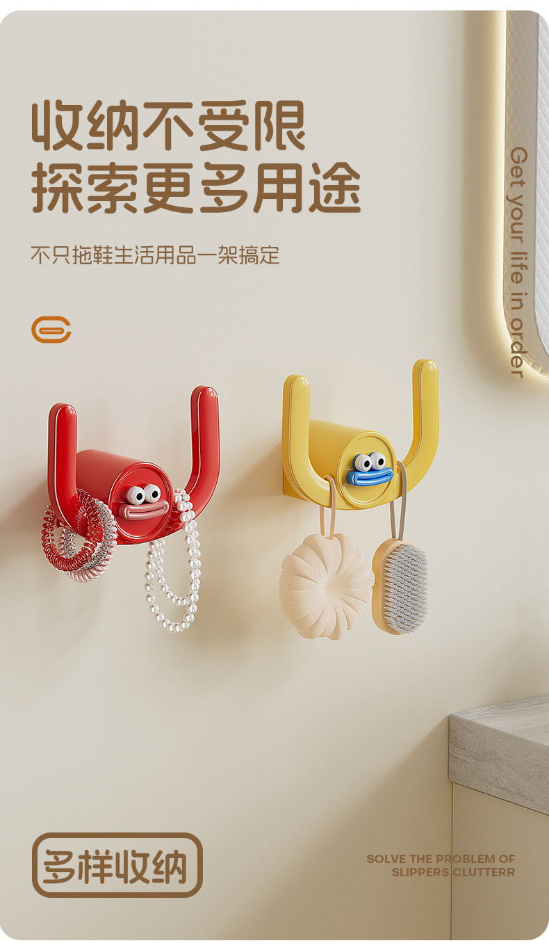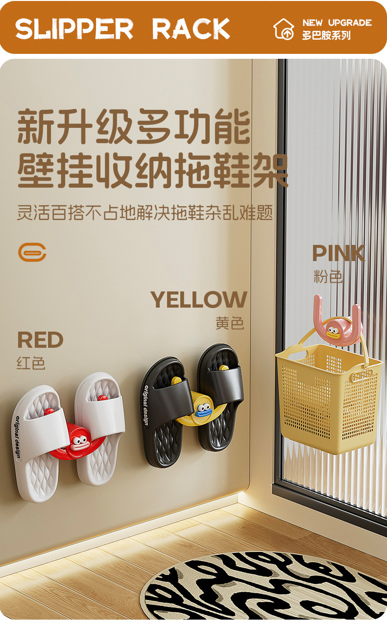 벽걸이형 슬리퍼 걸이, 만화 소시지 입 슬리퍼 걸이, 욕실 펀치 없는 신발 배수 보관함스토어 가기