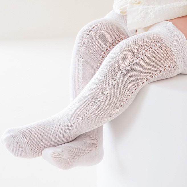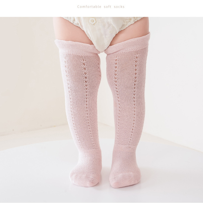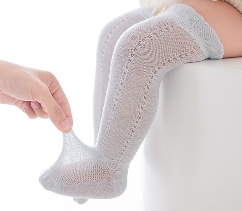 영유아를 위한 여름용 얇은 모기 방지 양말, 부드러운 벨벳 본리스 양말, 단색 중간 길이 양말, 여자 아기용 무릎 위 양말스토어 가기