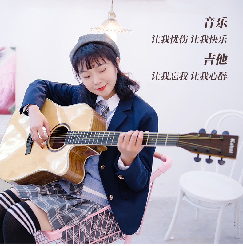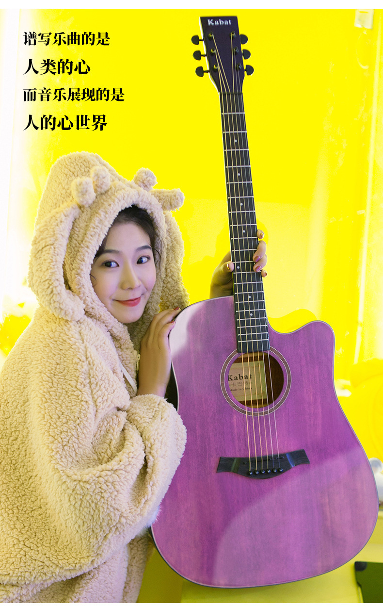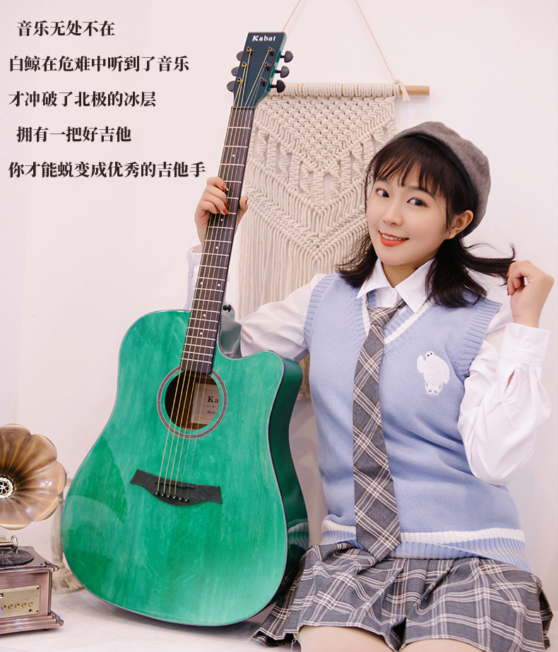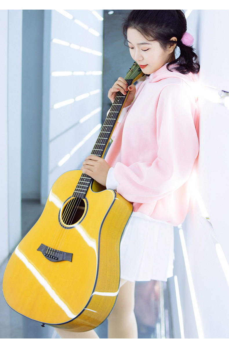 41 인치 포크 기타 초보자 연습 학생 소개 기타 연마 색상 연마 밝은 표면 단일 둥근 나무 기타스토어 가기