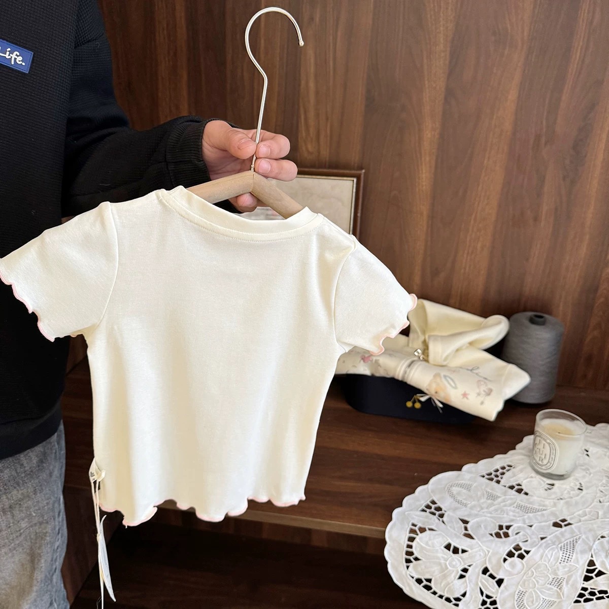 여자 한국식 반소매 티셔츠 2025 신설 여름 어린이 보우탑 아기의 한국식 올매치베이스 셔츠스토어 가기