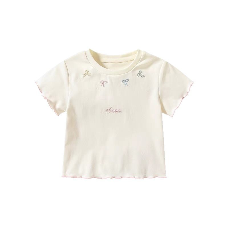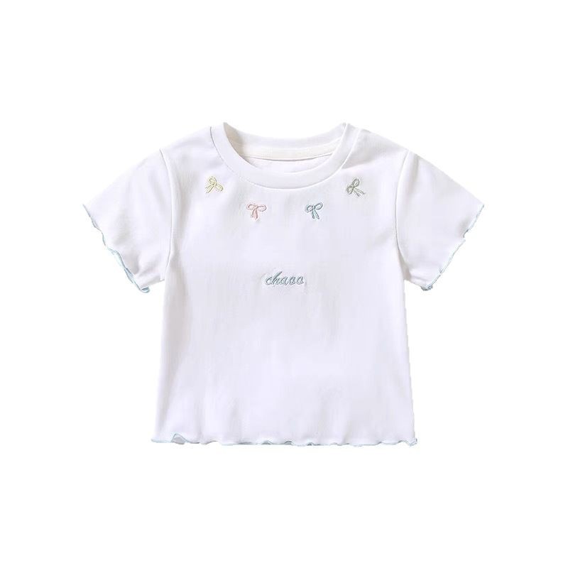 여자 한국식 반소매 티셔츠 2025 신설 여름 어린이 보우탑 아기의 한국식 올매치베이스 셔츠