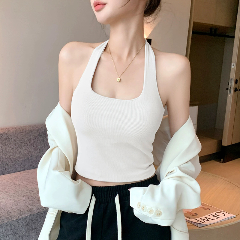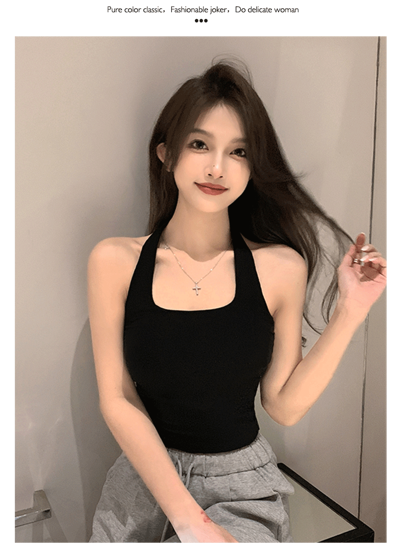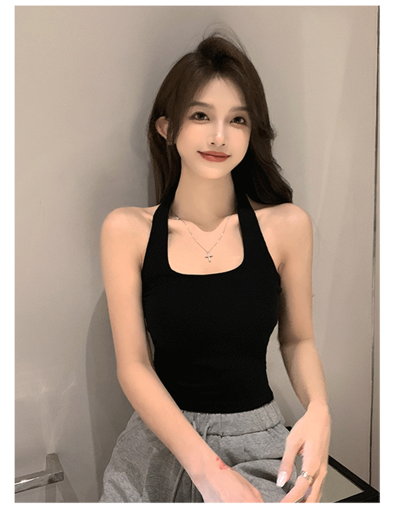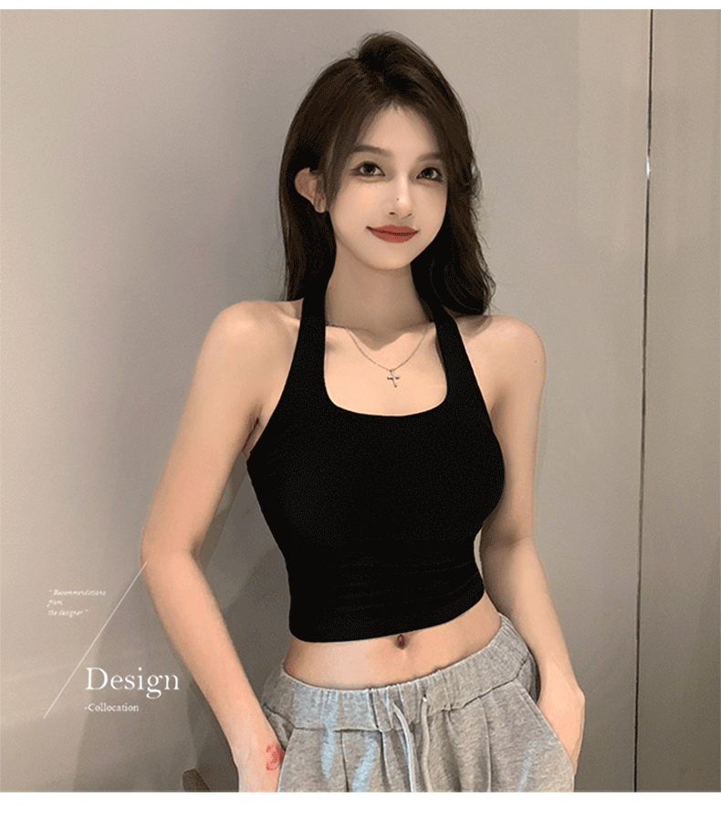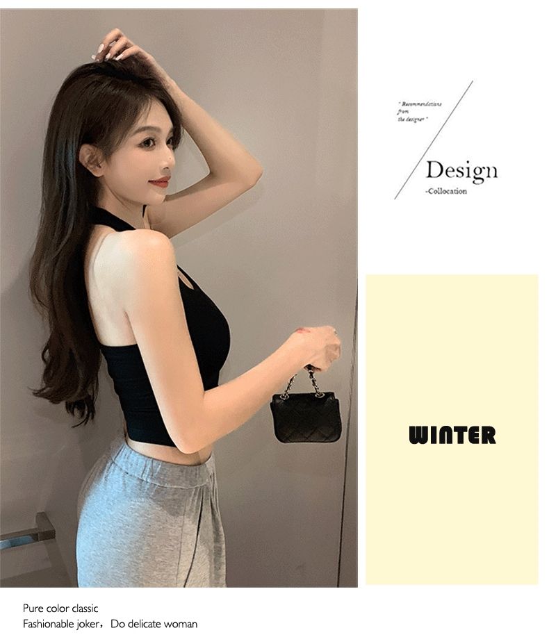 黑色新款挂脖女内搭夏季外穿美背短款独特别致小上衣