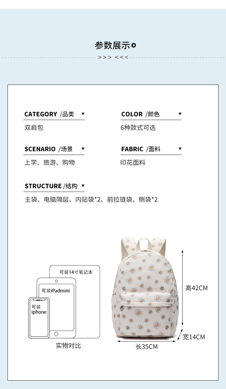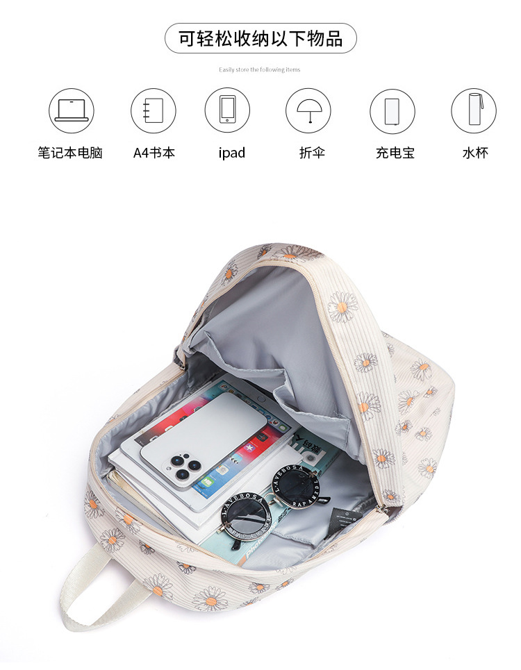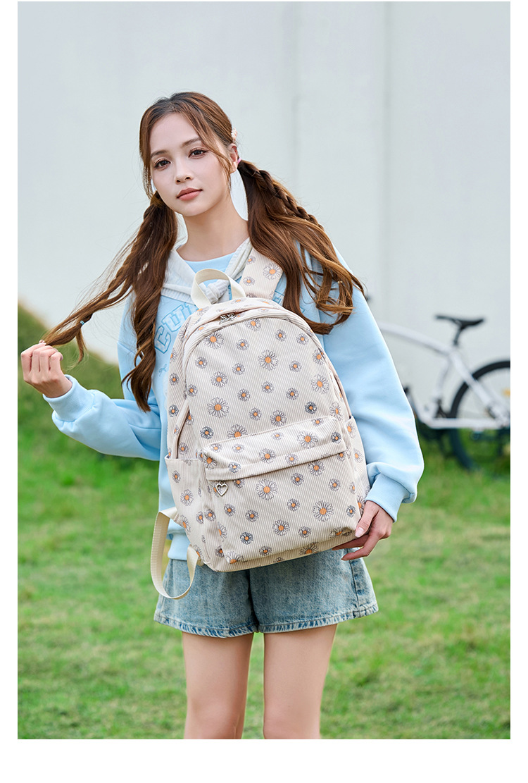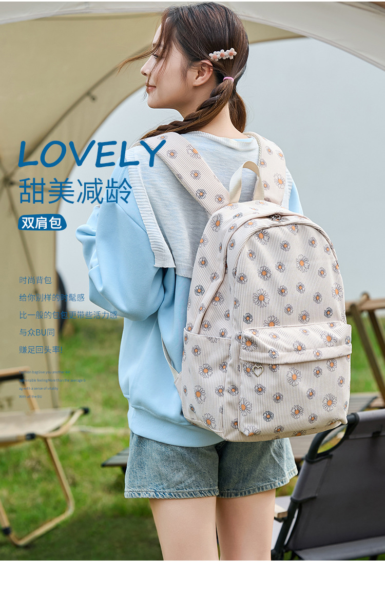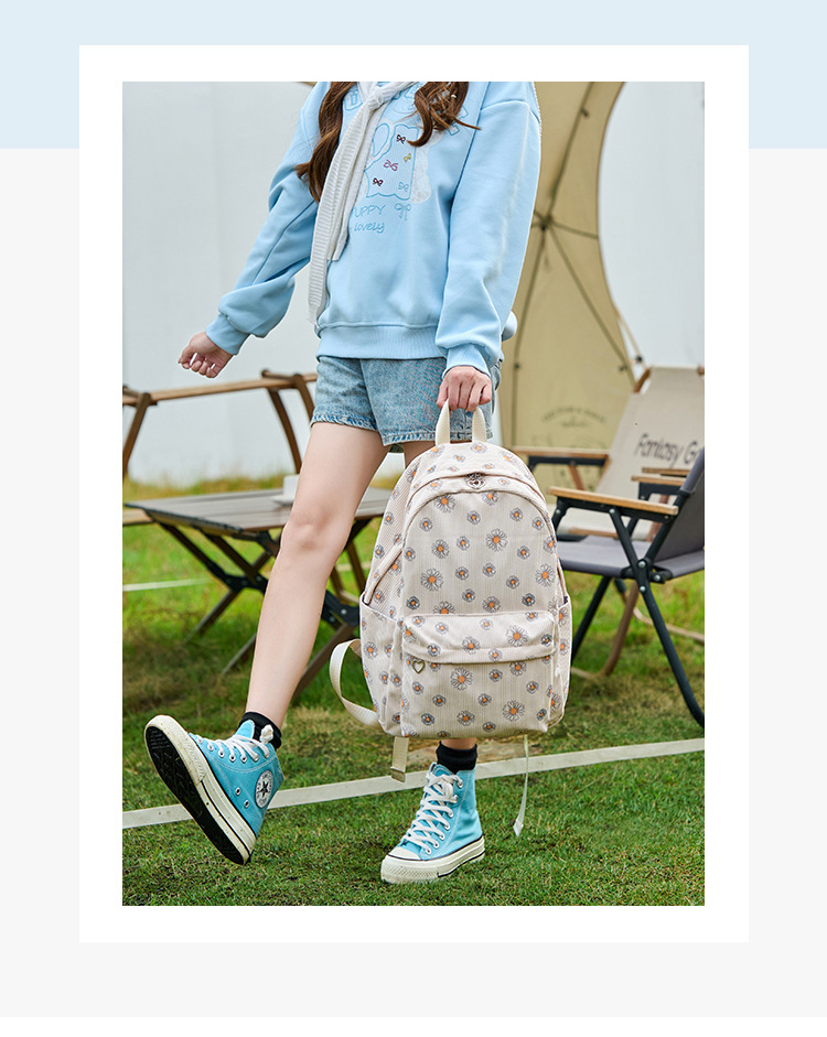 아마존 폭발 Corduroy 중학교 학교 가방 소녀 데이지 초등학생을위한 초경량 대용량 배낭스토어 가기
