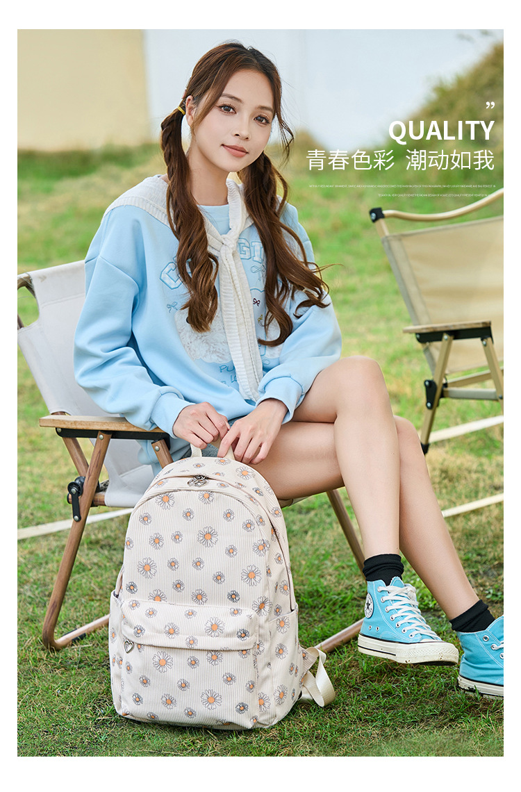 아마존 폭발 Corduroy 중학교 학교 가방 소녀 데이지 초등학생을위한 초경량 대용량 배낭