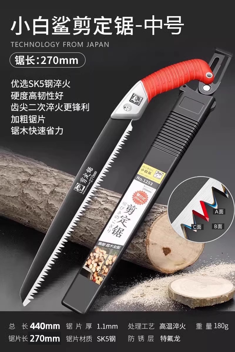 • 440mm 일본식 작은 흰색 상어 SK5 강철 가위-중형 [무료 톱 세트]